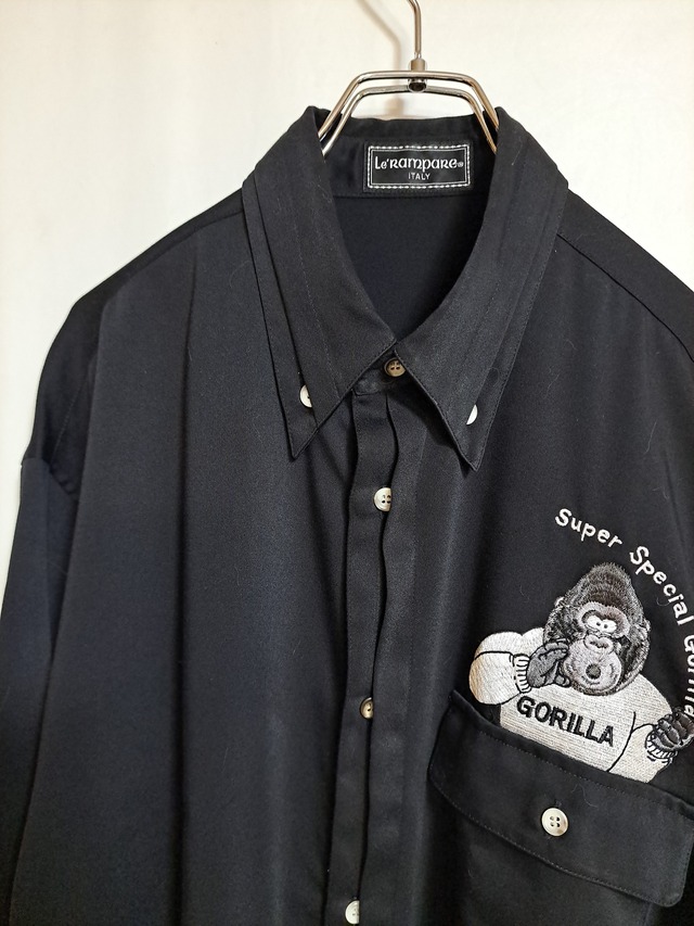 【90s】長袖シャツ ボタンダウン ゴリラ刺繍 ややもったり感 薄手 メンズ