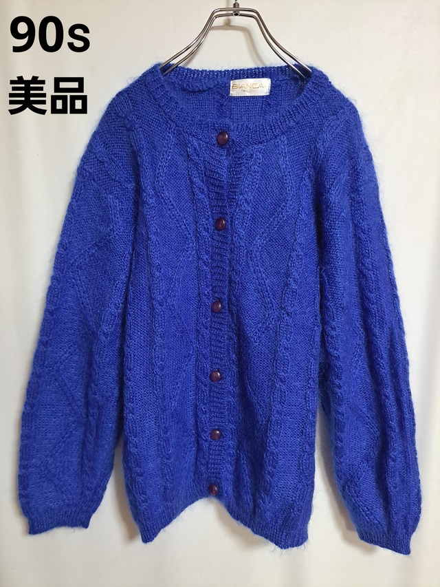 【美品、90s】長袖 モヘヤニット カーディガン 中厚手 ウール混