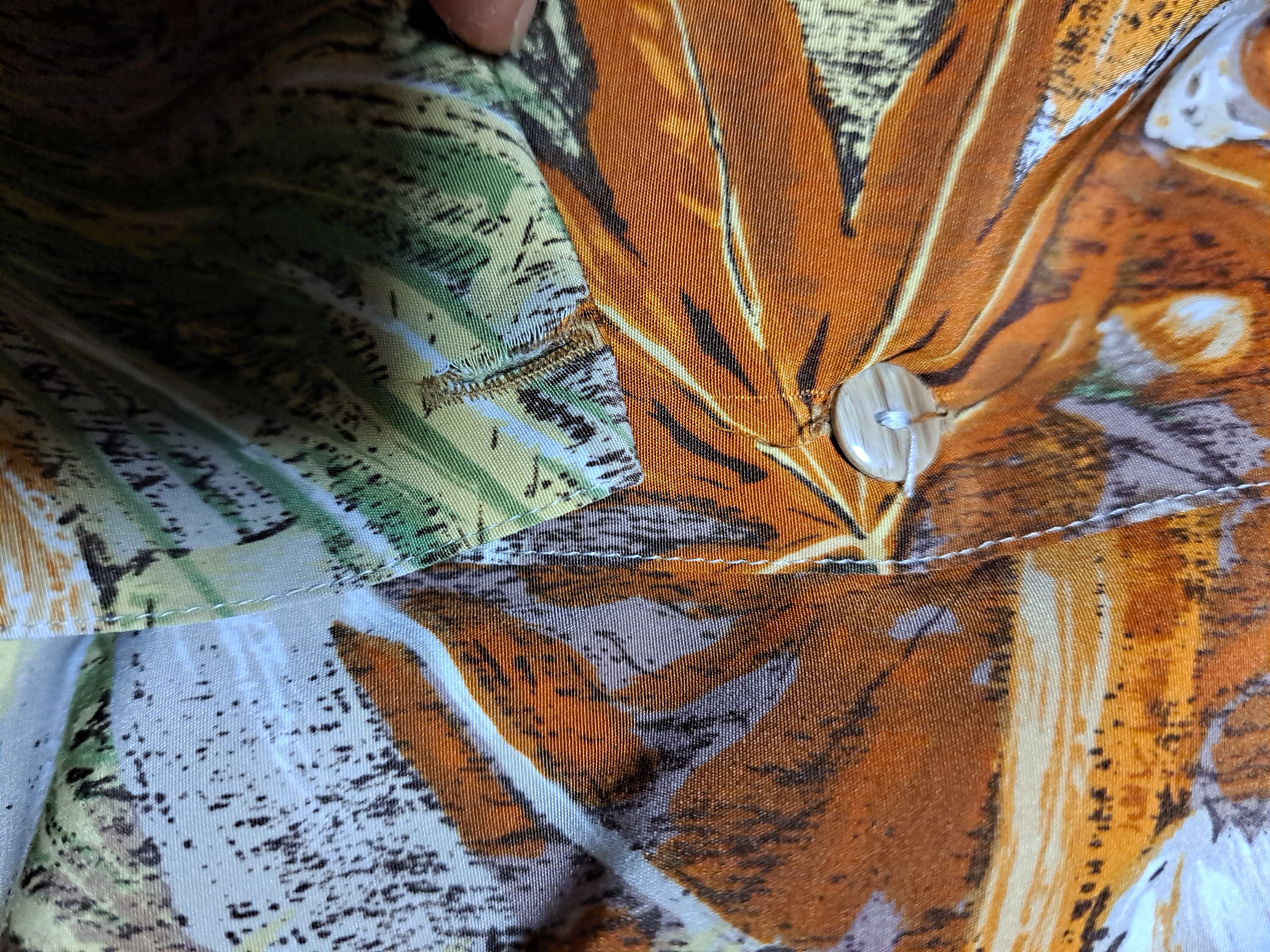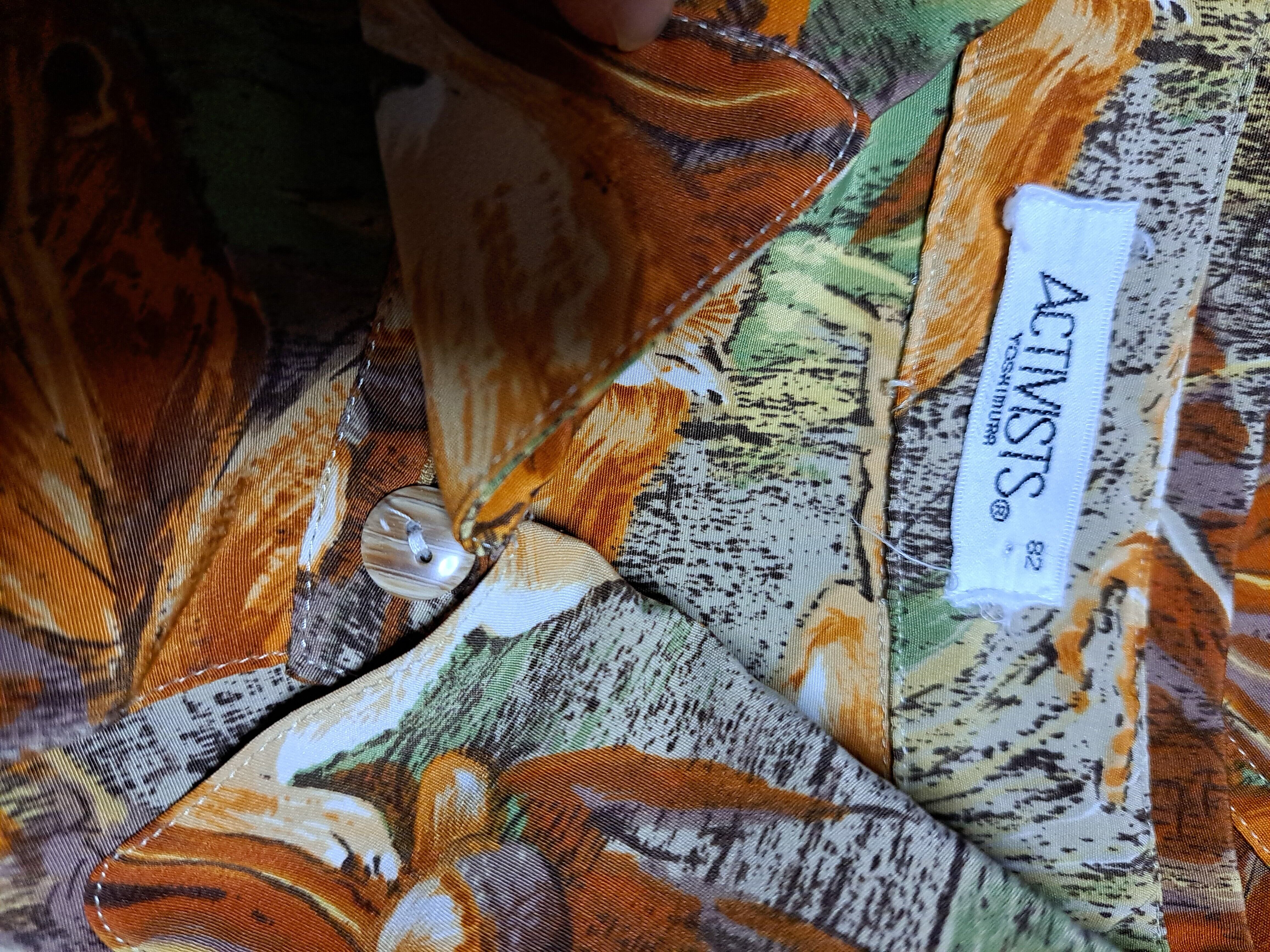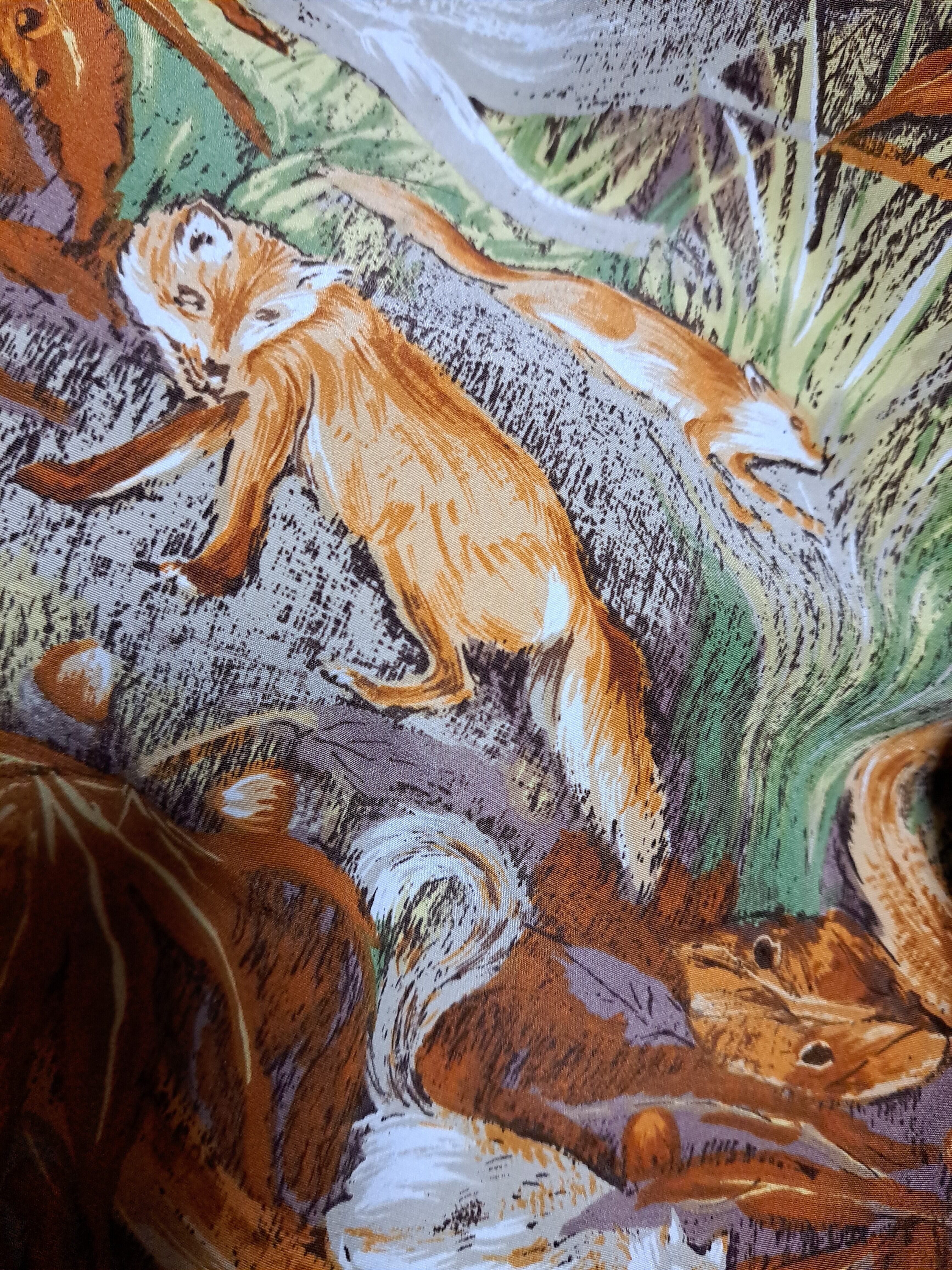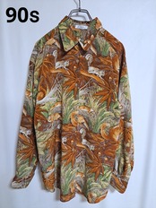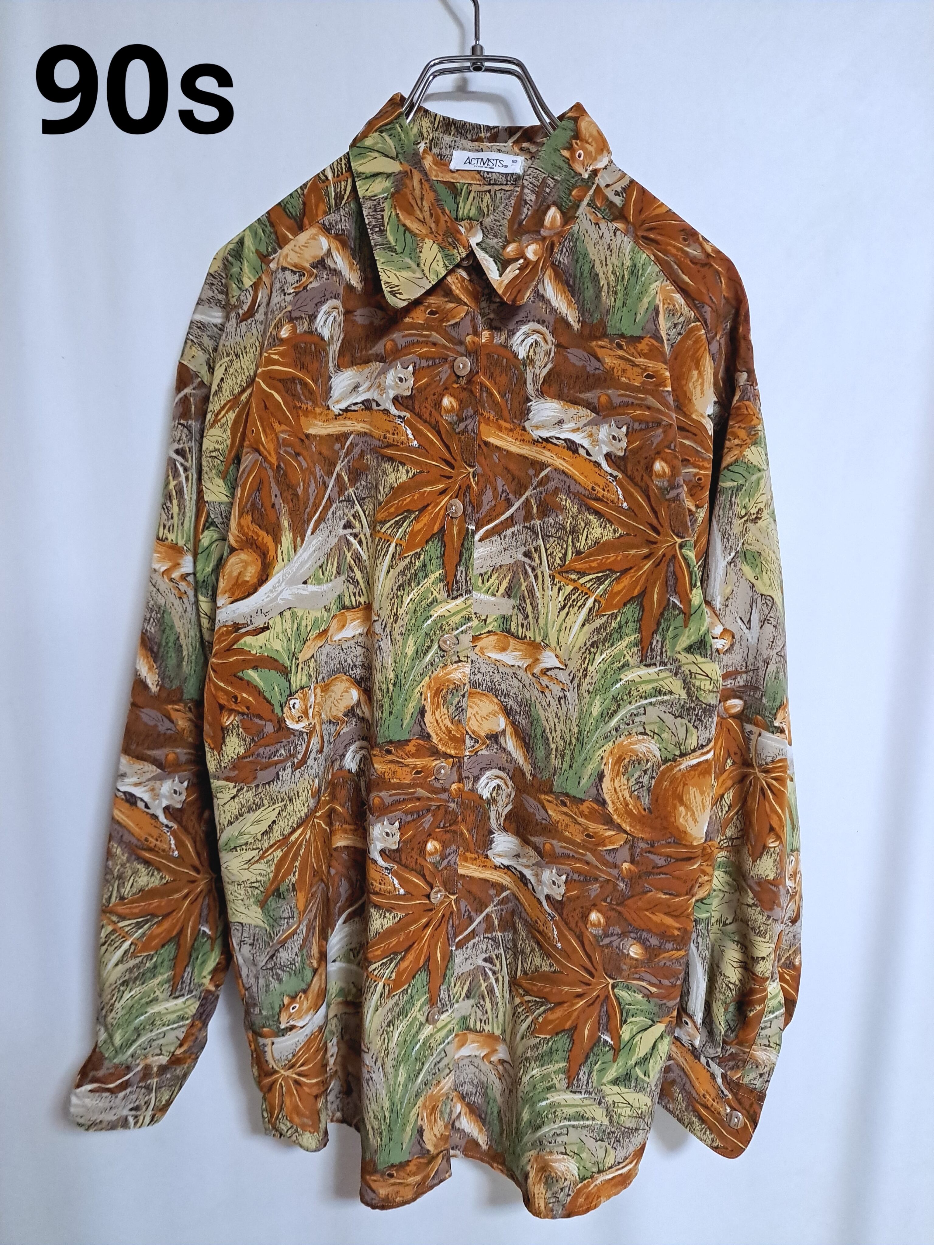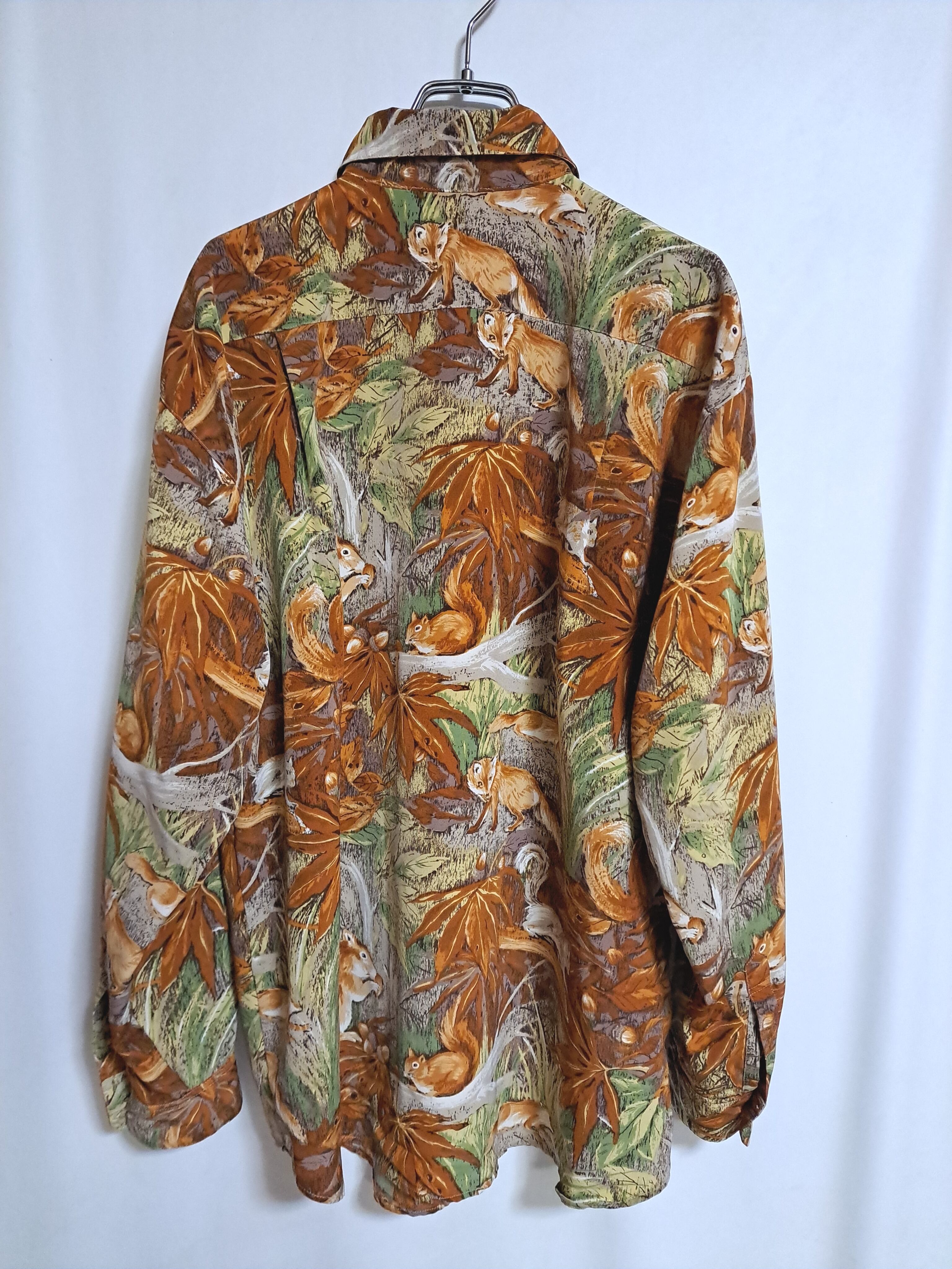 若干もったり、すべすべした感触の、オータム風カラーの長袖シャツ。アニマルデザインなどナチュラル系が好きな方に。
