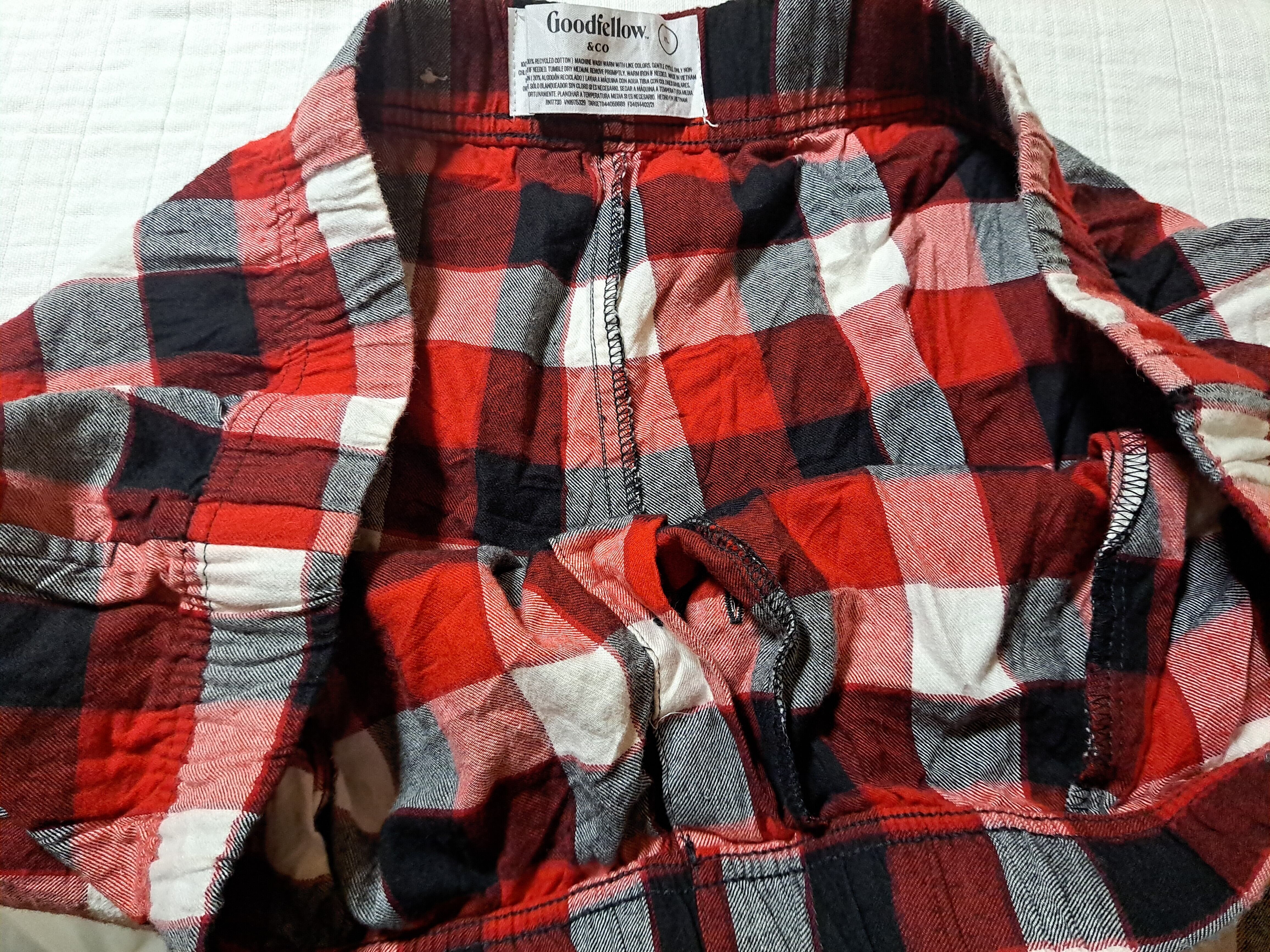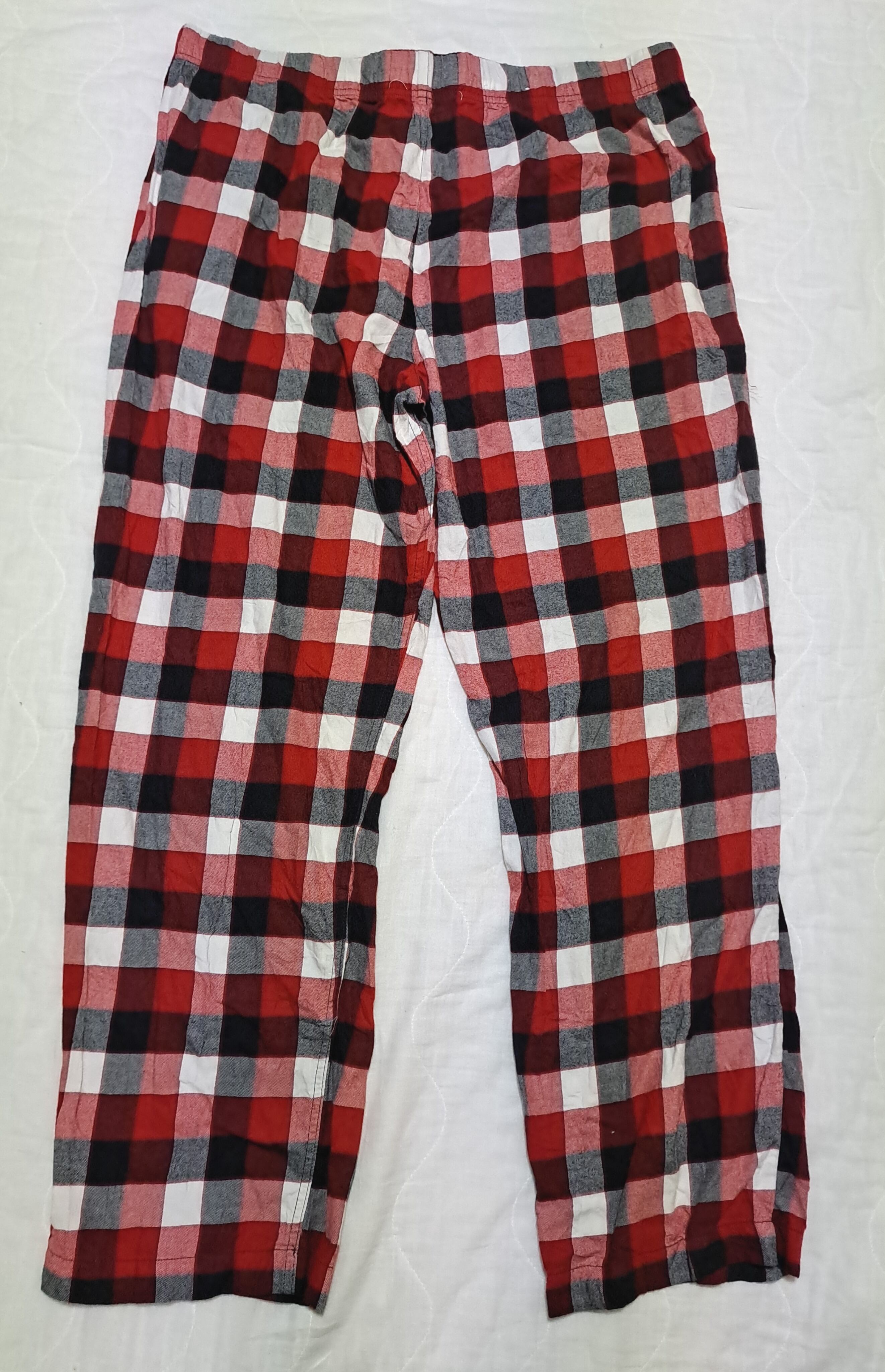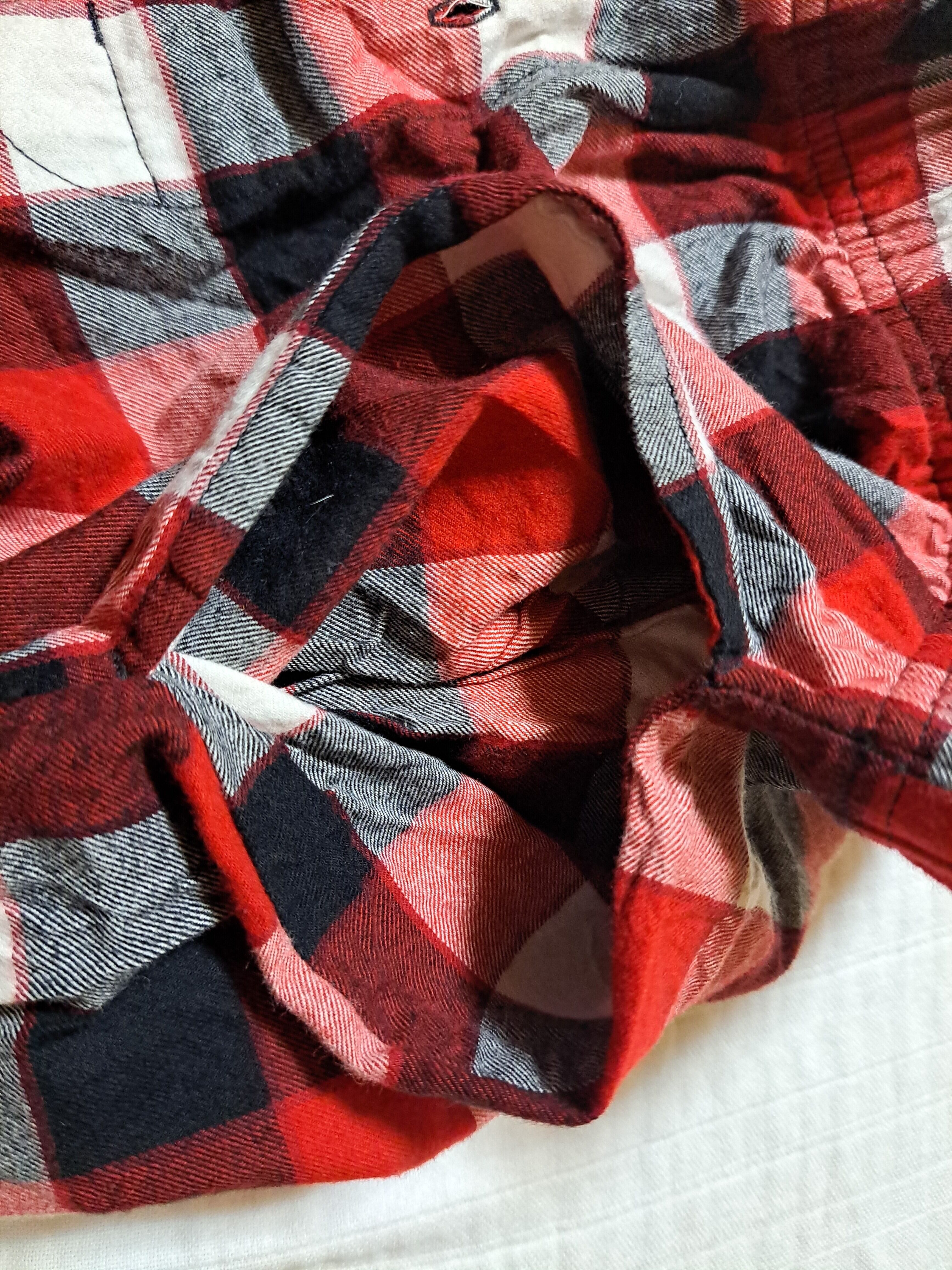 うっすら起毛素材の、ウエストゴム仕様で紐付きのパジャマパンツ。ポケットは左右に合計2つで、フロントにはボタン付きです。