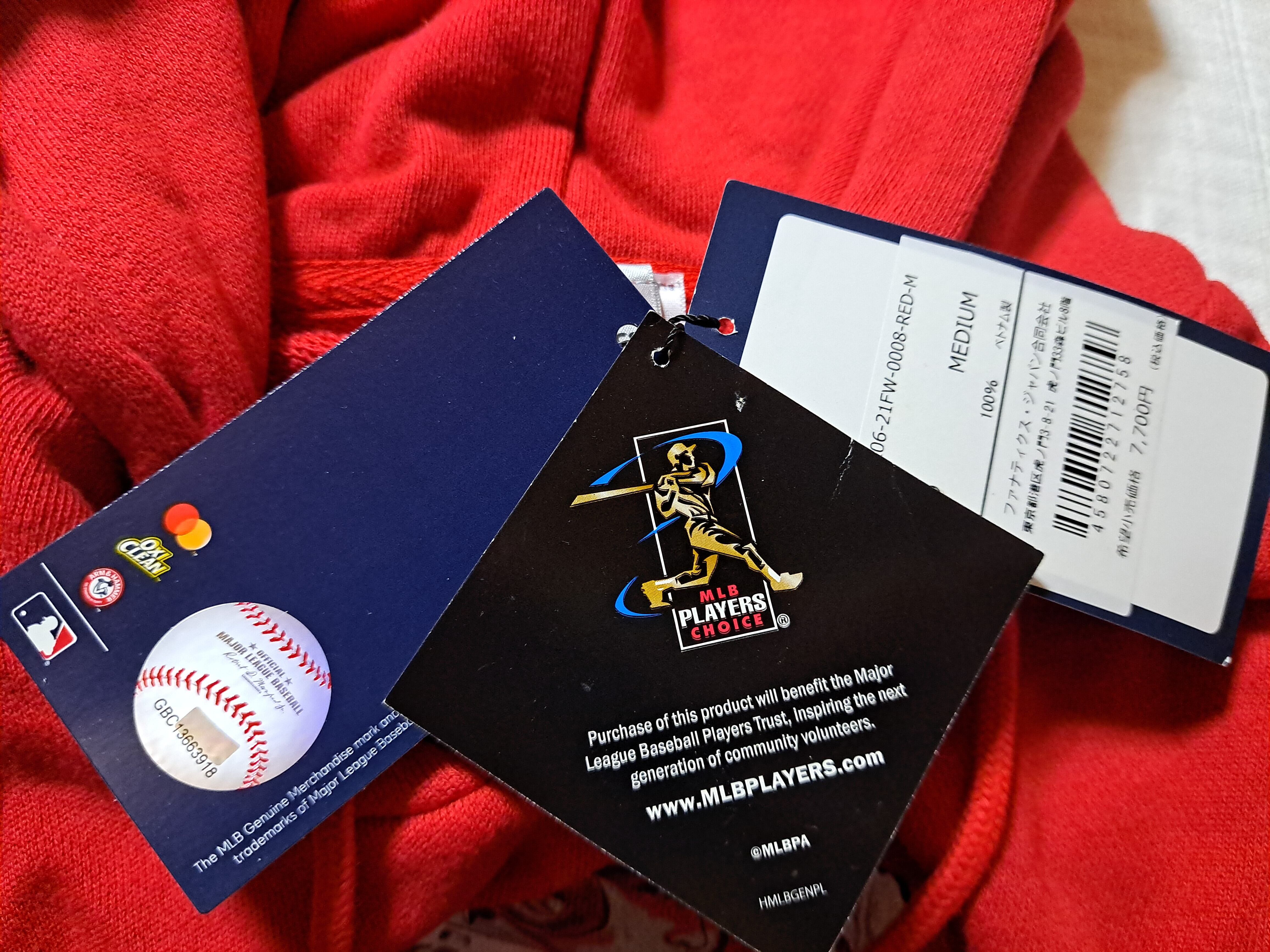 MLB公式ライセンスアイテムで、綿100%の肌触りの良い薄手のパーカー。