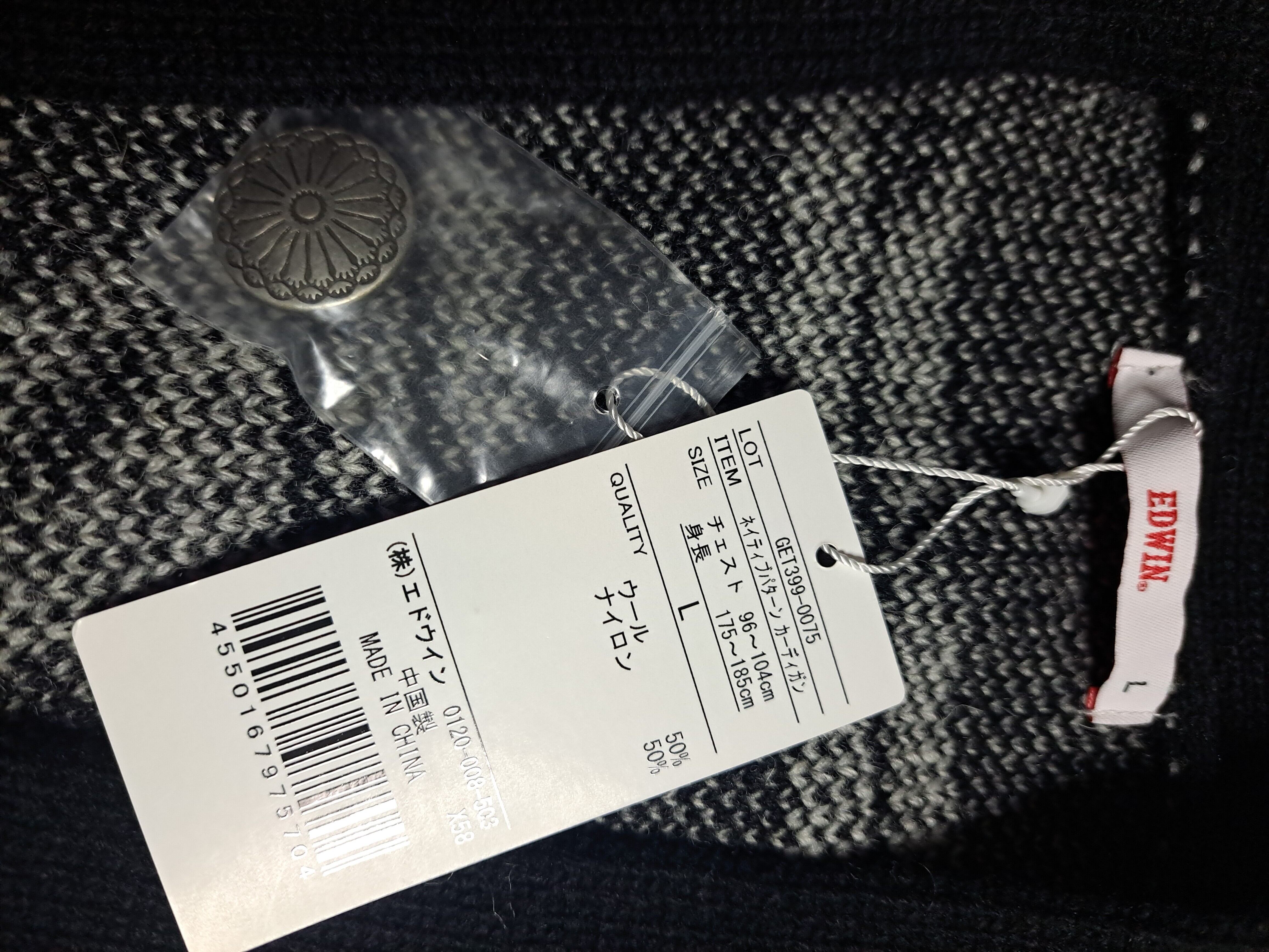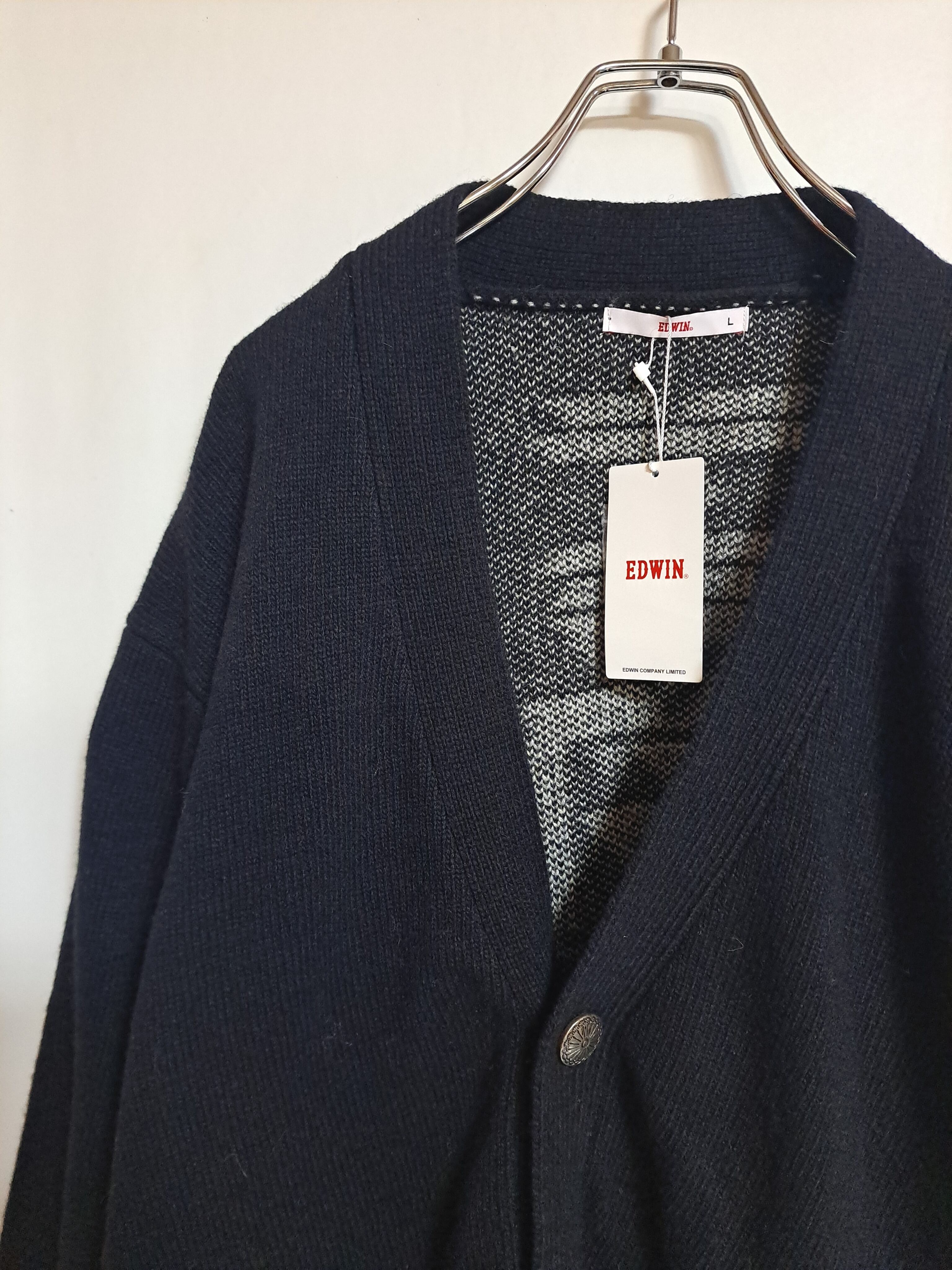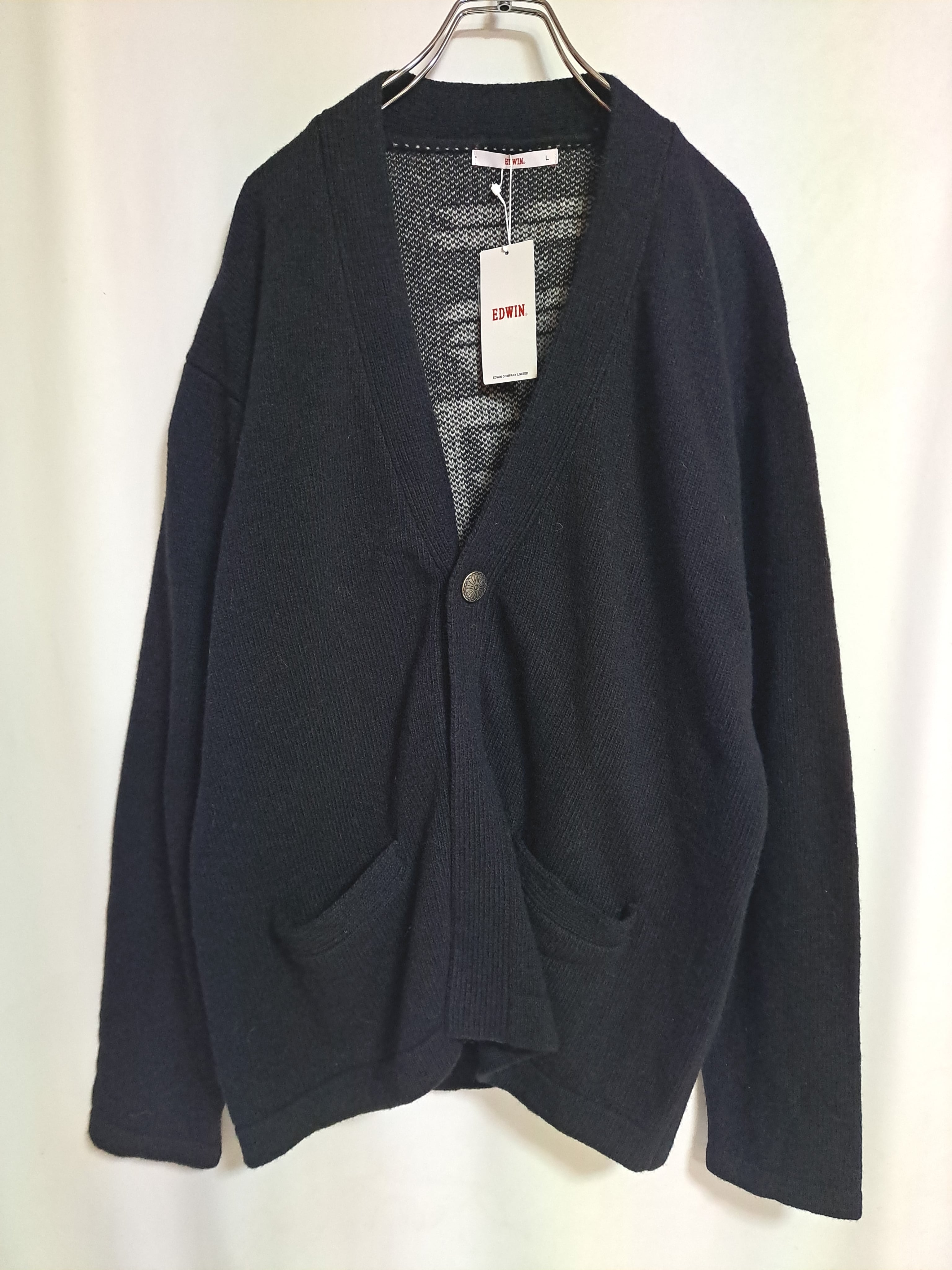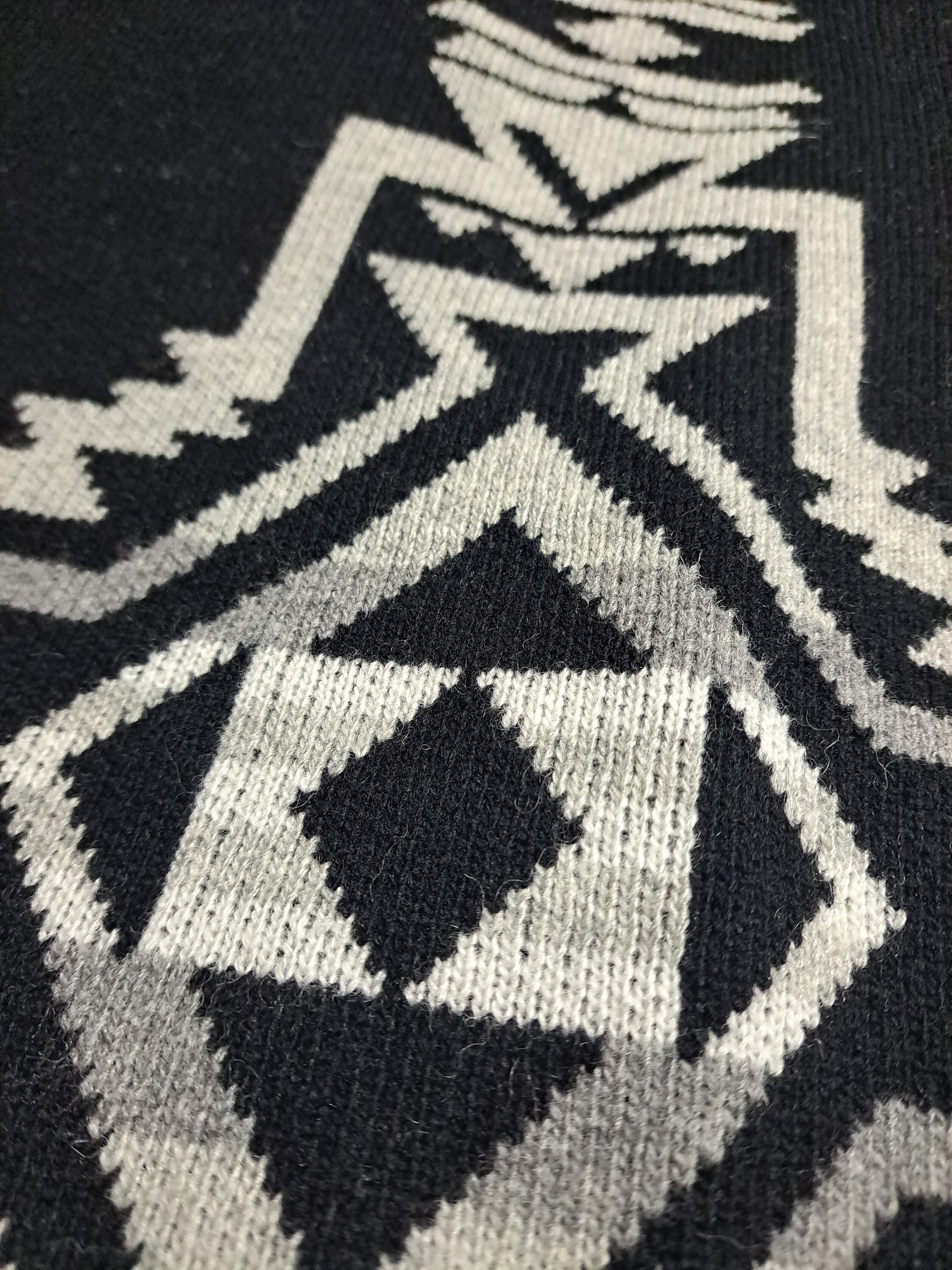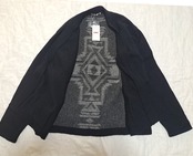 バックのネイティブ柄がインパクトある、1つボタンのニットジャケット、カーディガン。ボタンは金属製で、替え付きです。ポケットは2つ、裏地のないタイプ。