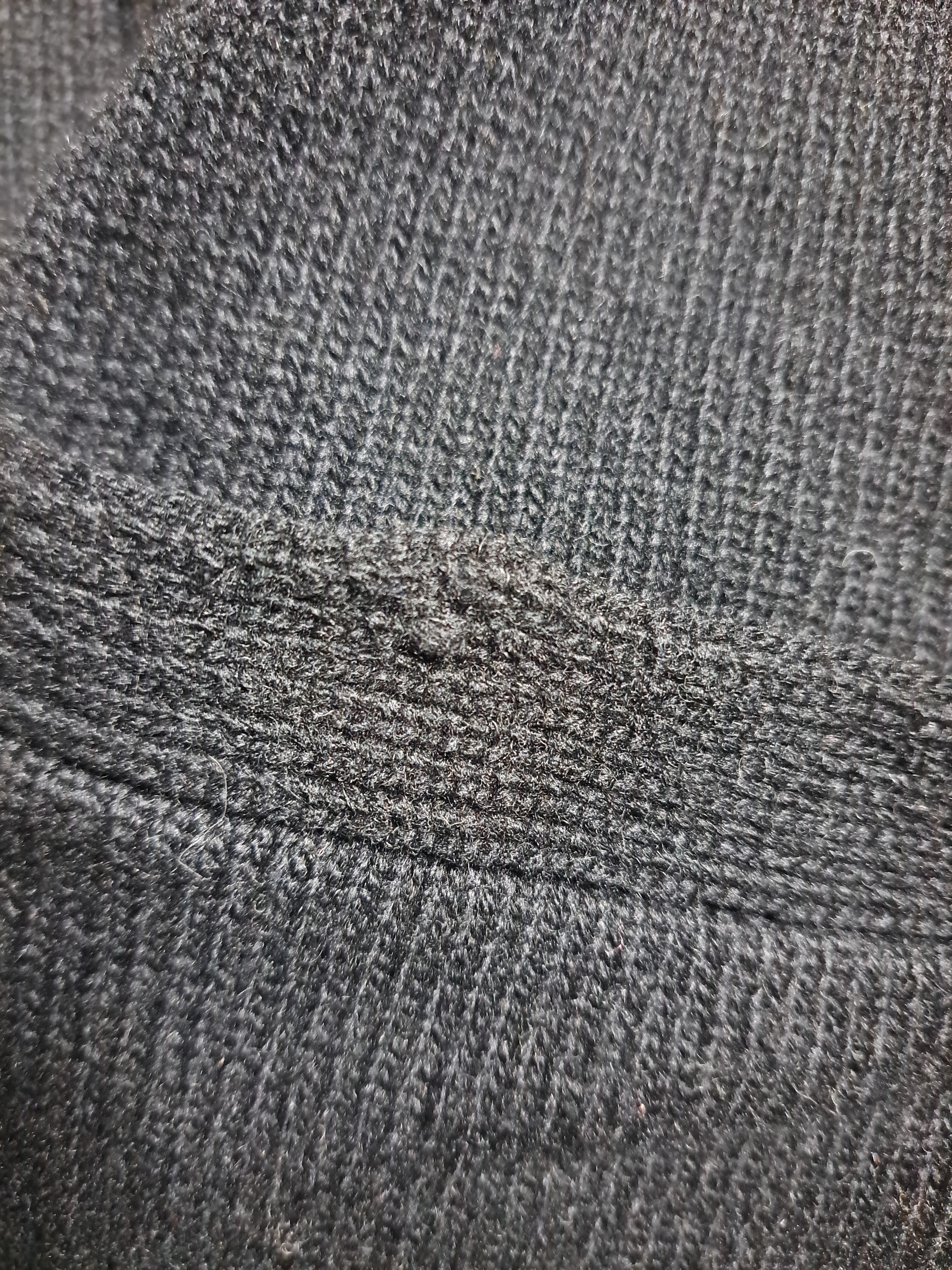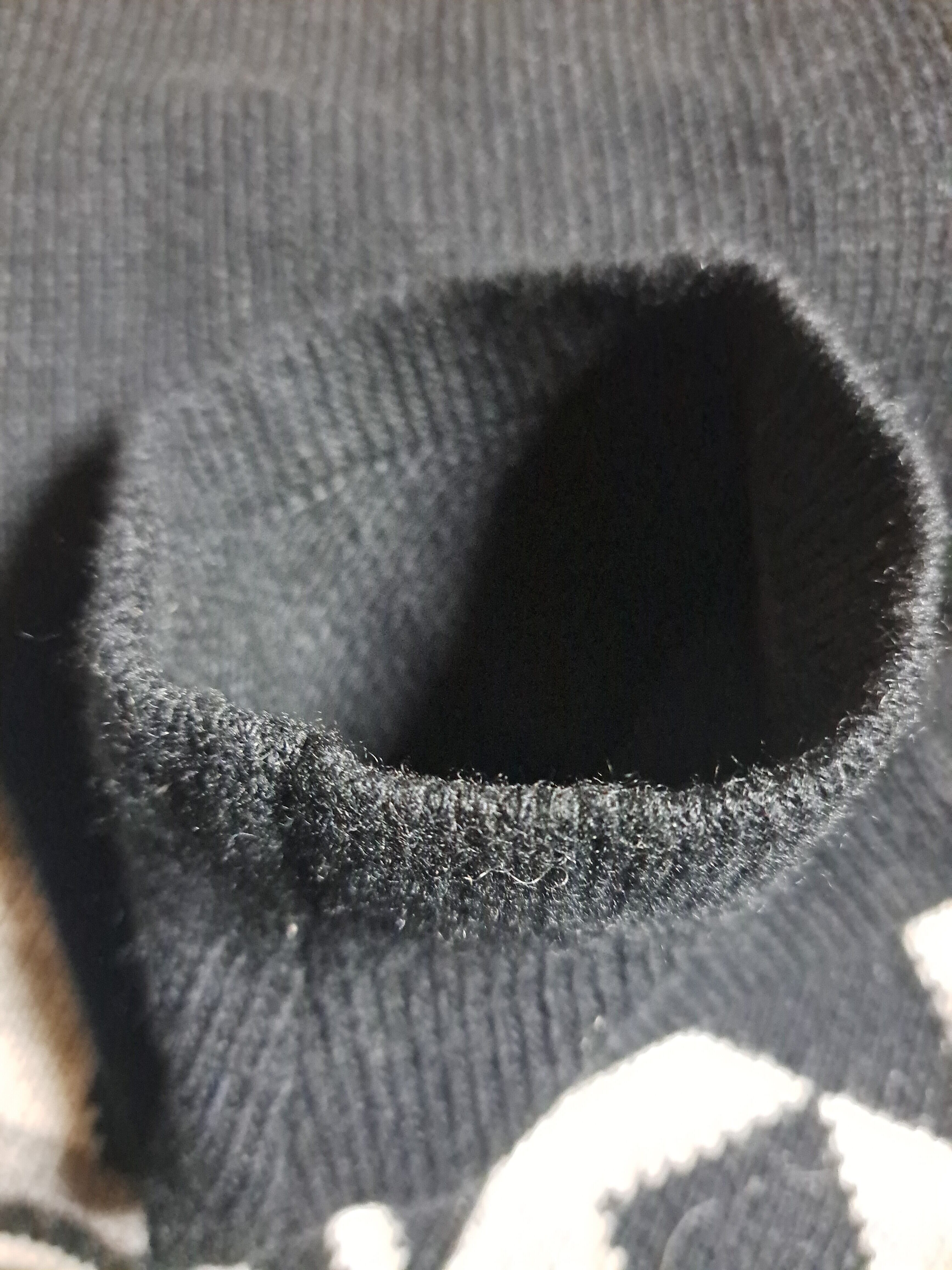ウール混で温かいです。生地がウール混のせいか、生地の所々が白っぽくなっていますが、不良品ではありません(6枚目の写真参照)。