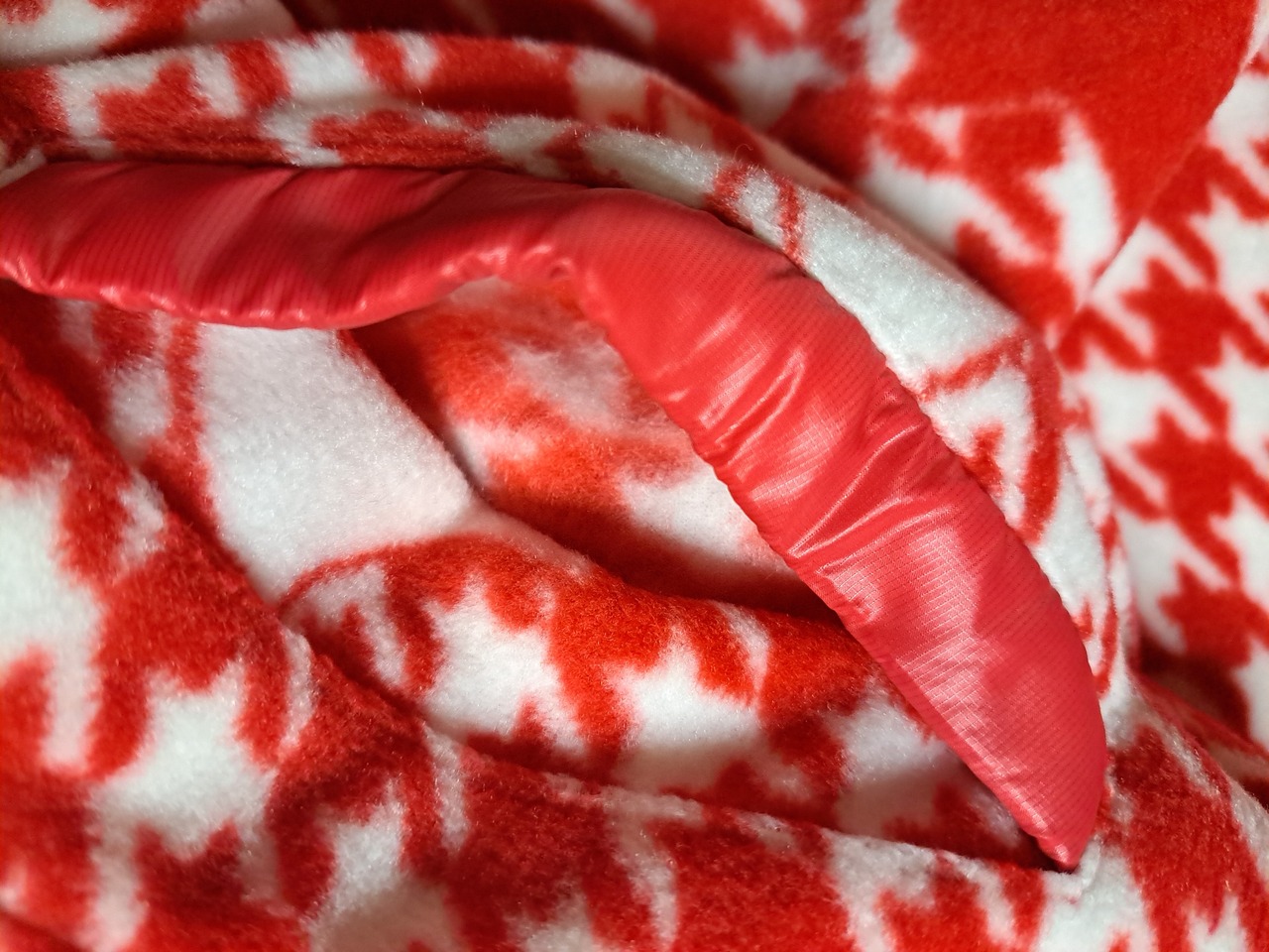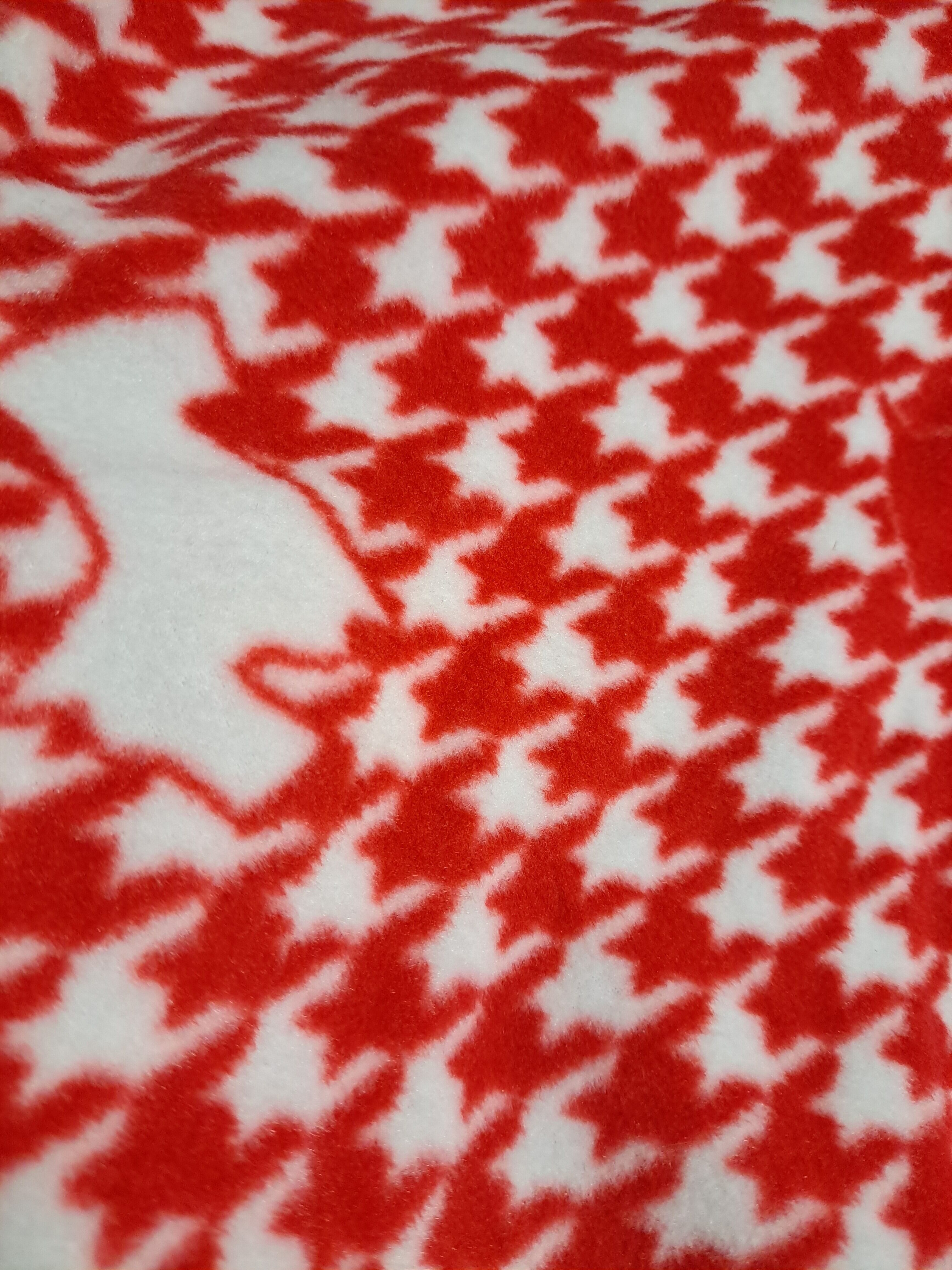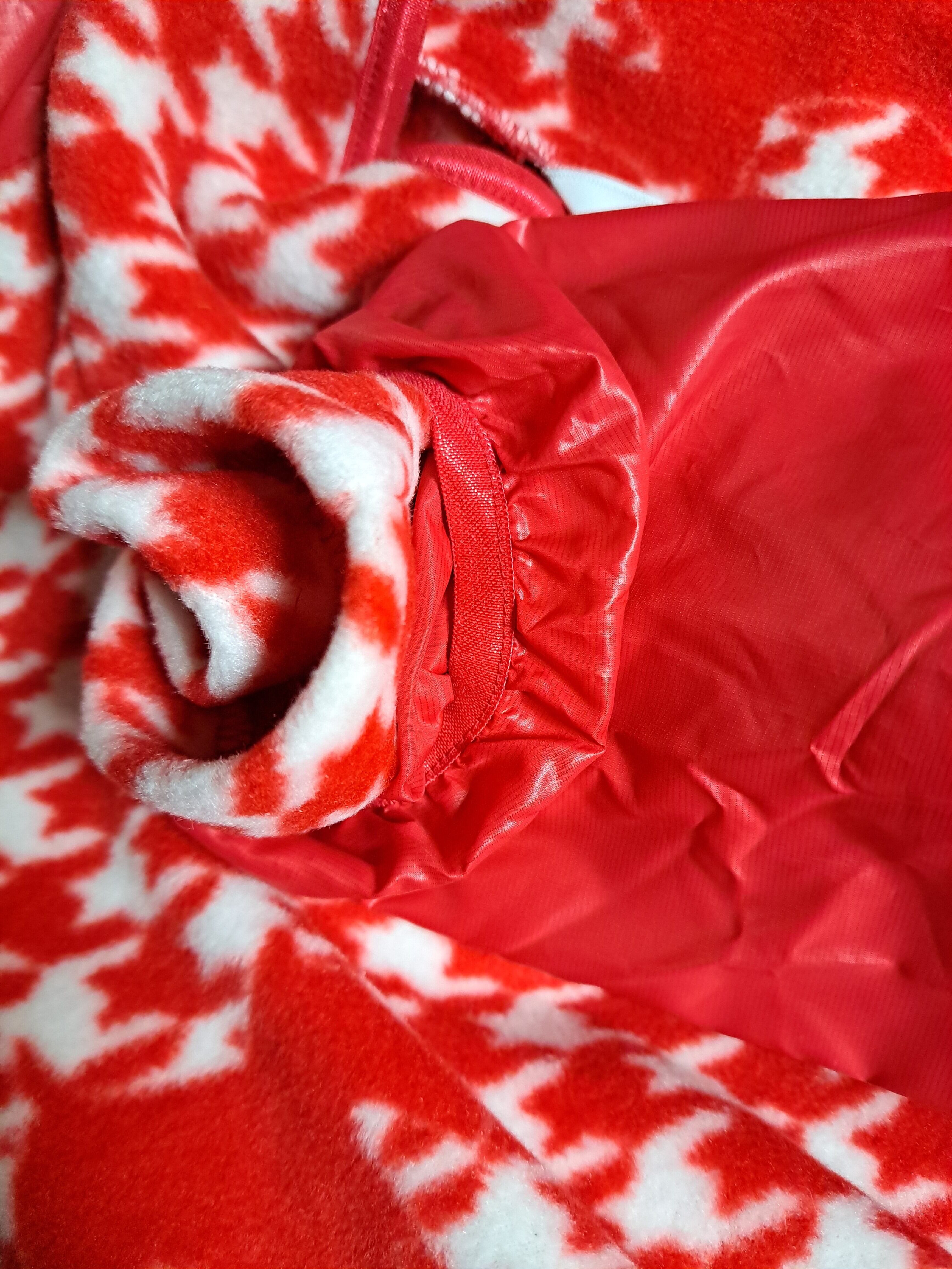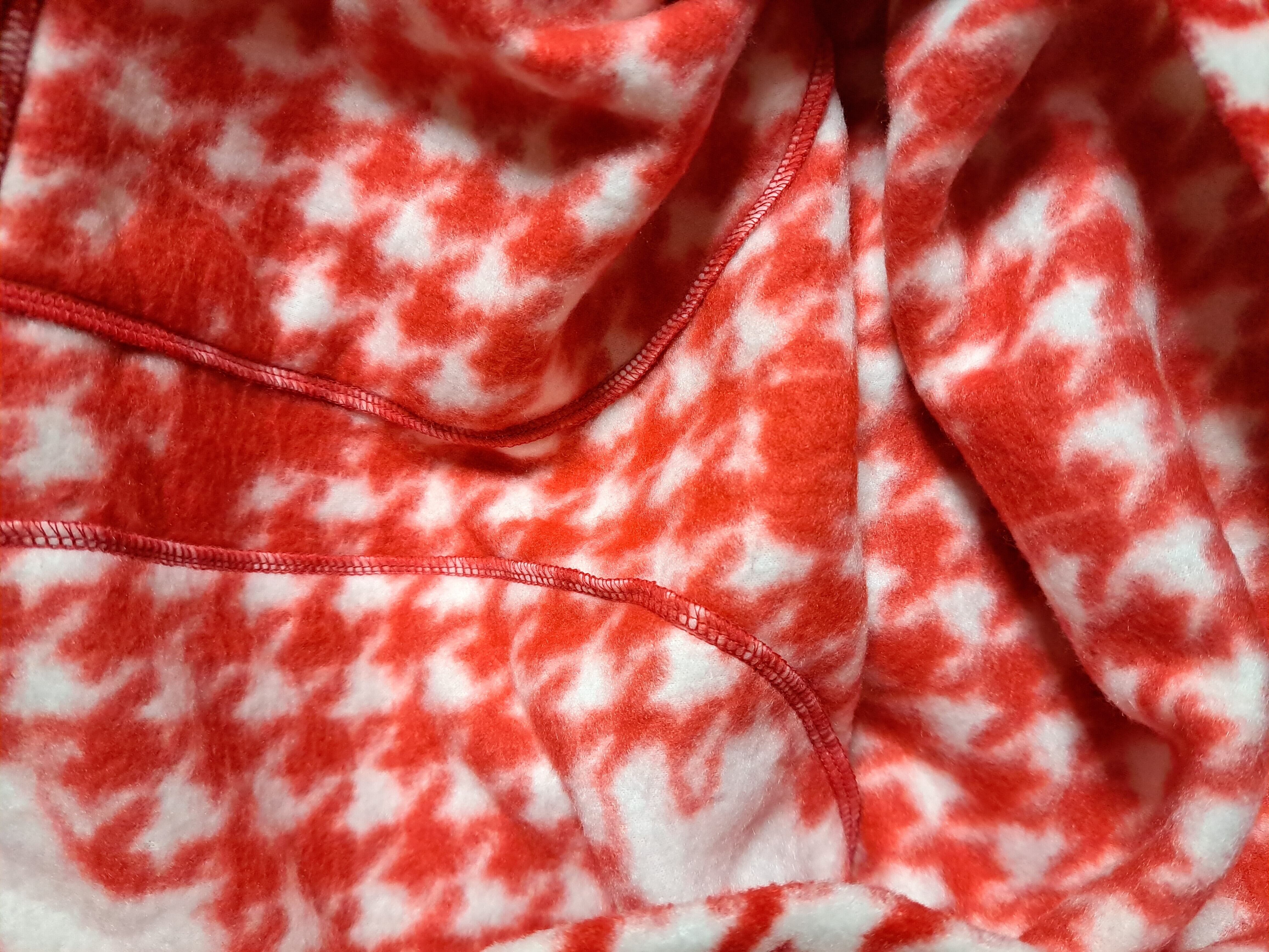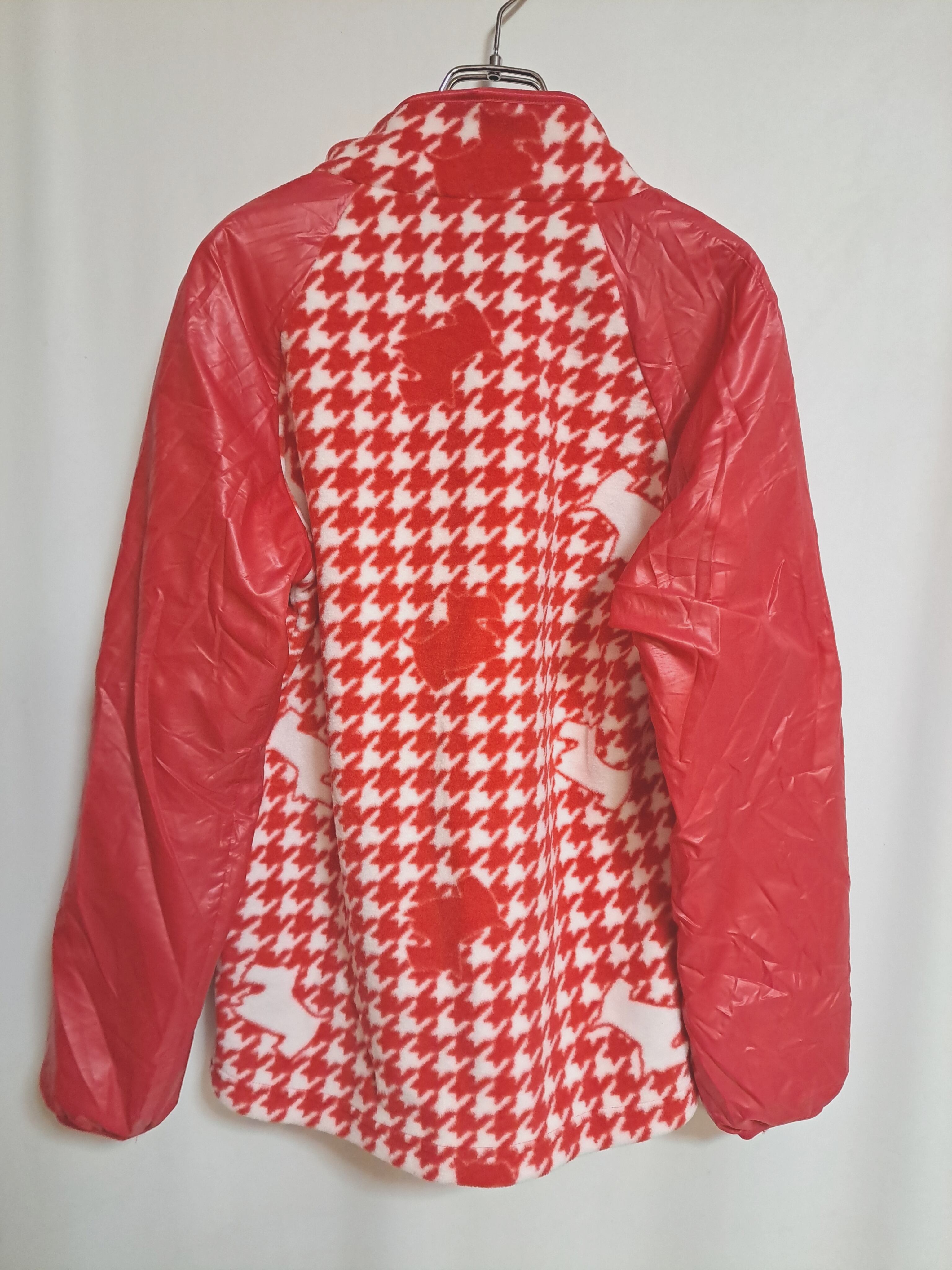 アームの部分が、フリース部分と薄い無地部分の二重構造になったタイプで暖かいです。ポケットは合計2つ。犬のシルエット柄が可愛らしい、日本製品。