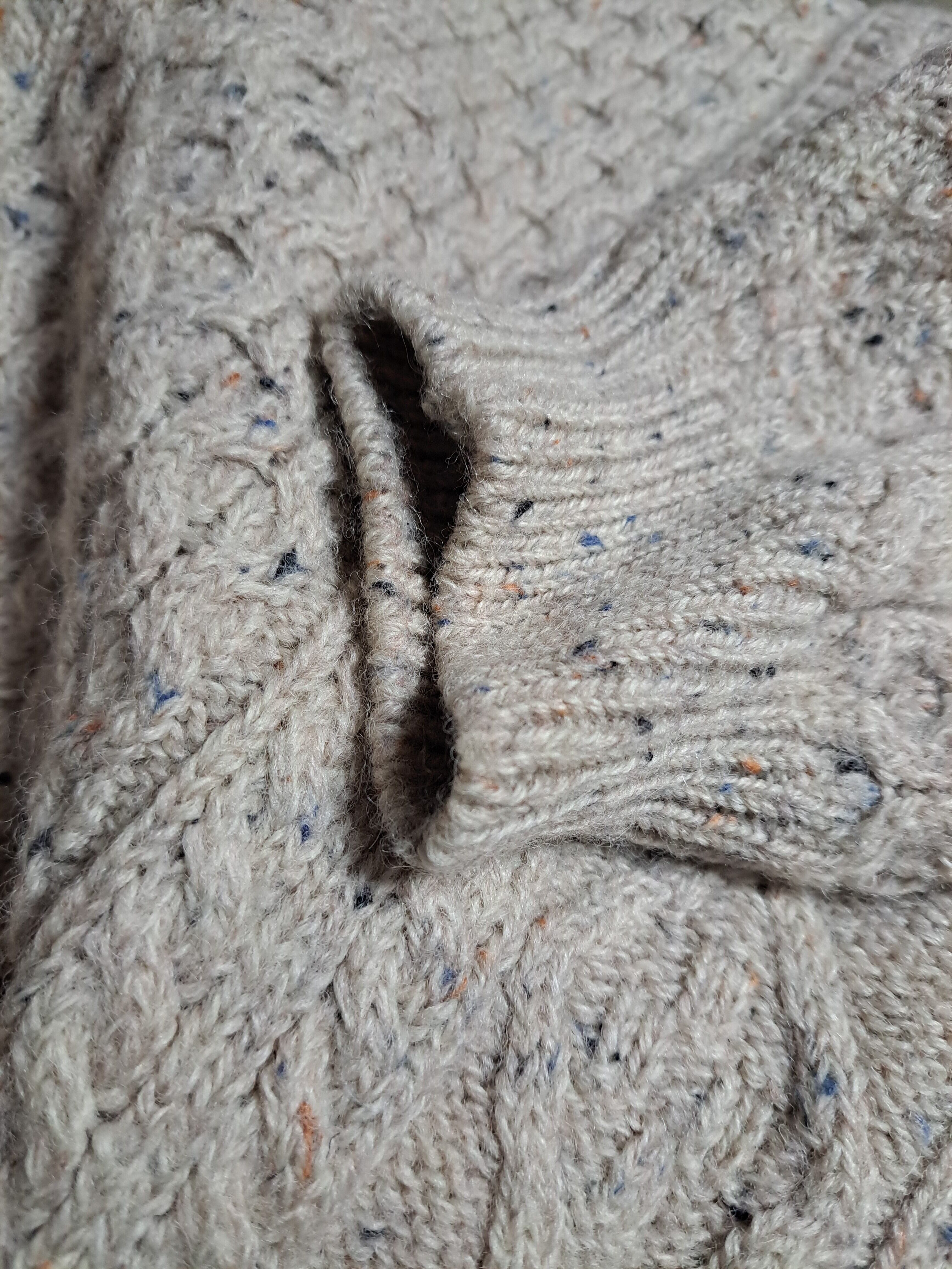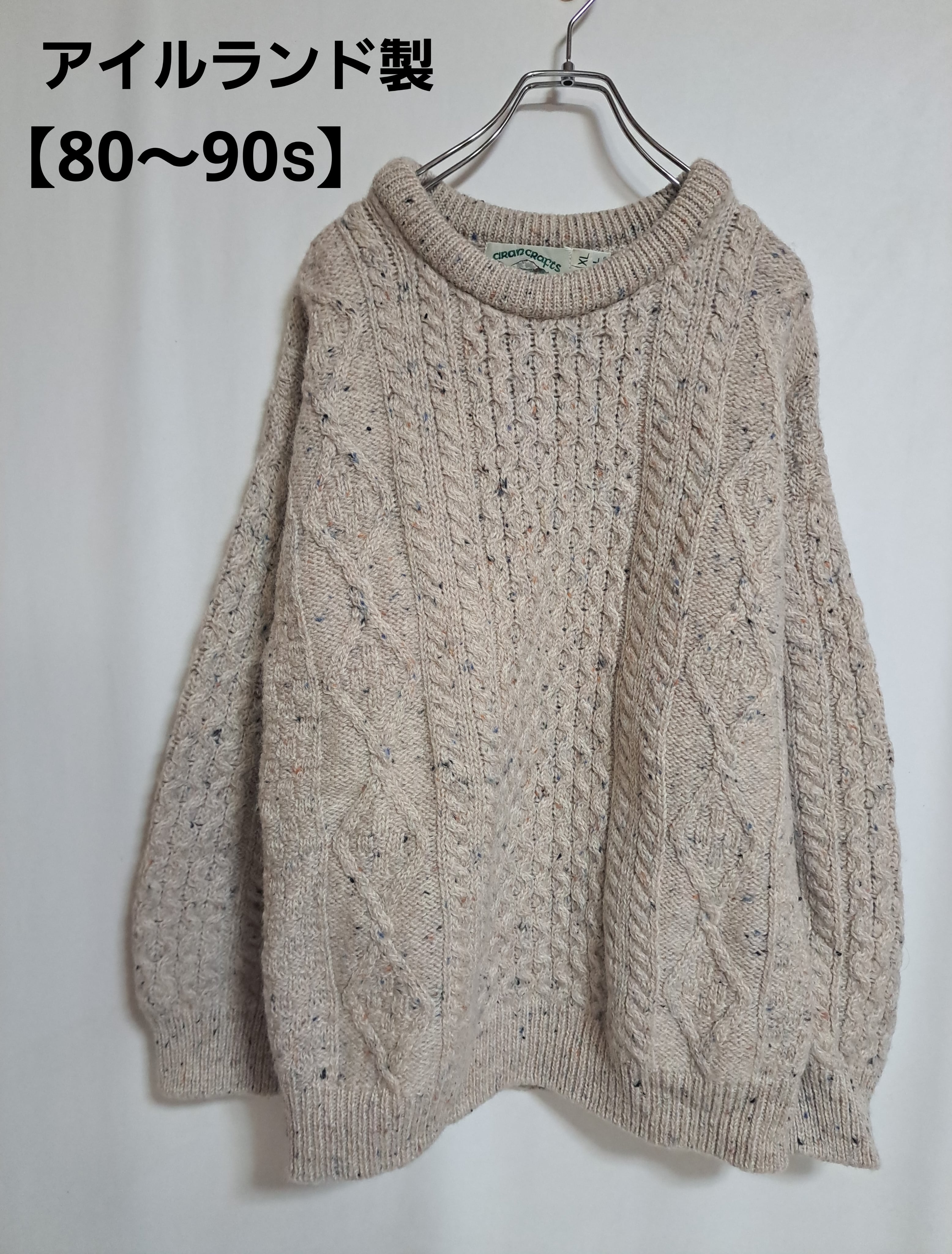 【80~90s】アイルランド製 アランニット フィッシャーマンセーター 厚手 ネップ糸 ミックスカラー メンズ