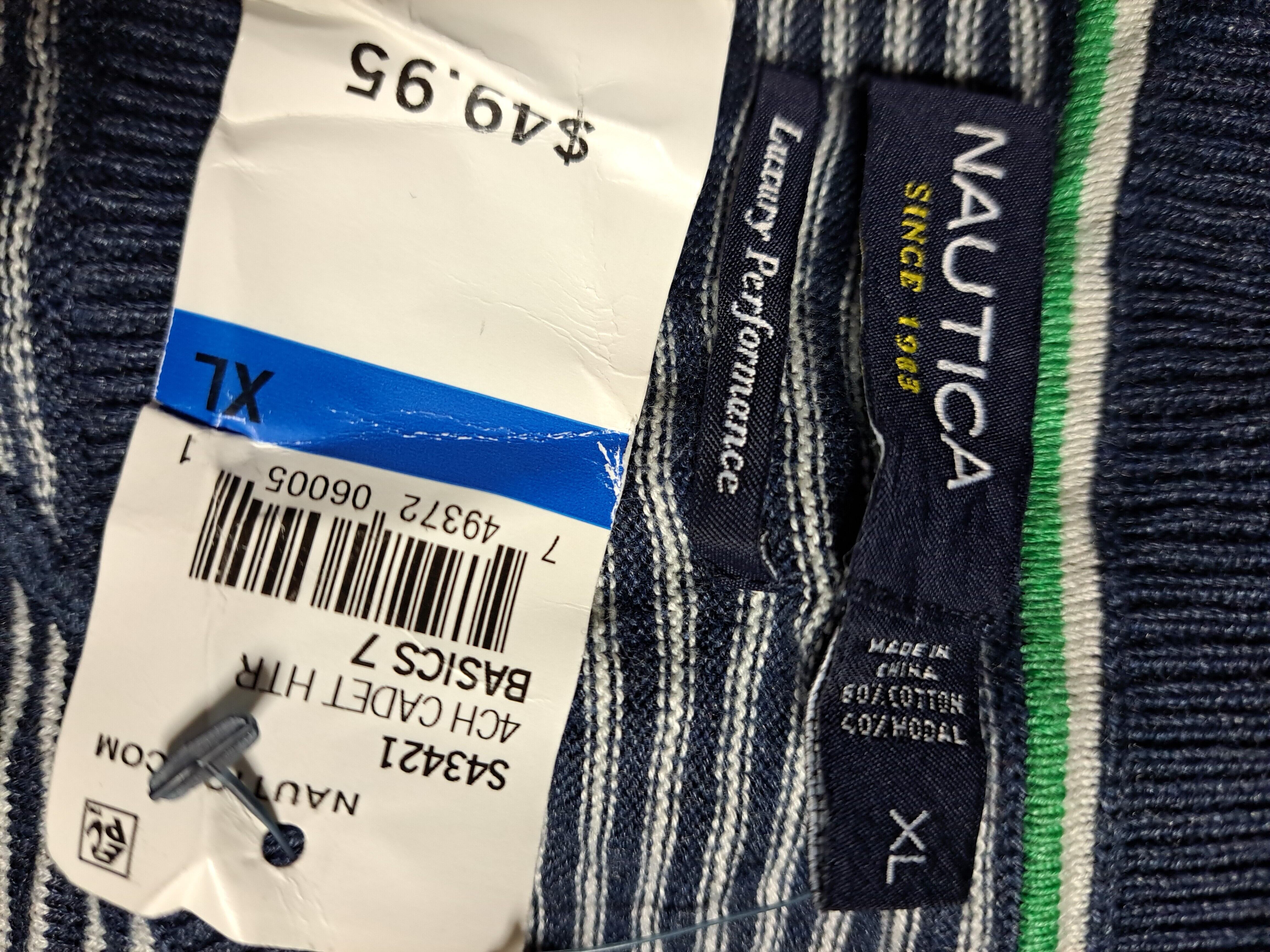 【未使用、海外製品】ノーティカ ニット セーター 薄手 細ボーダー ワンポイントロゴ刺繍 メンズ