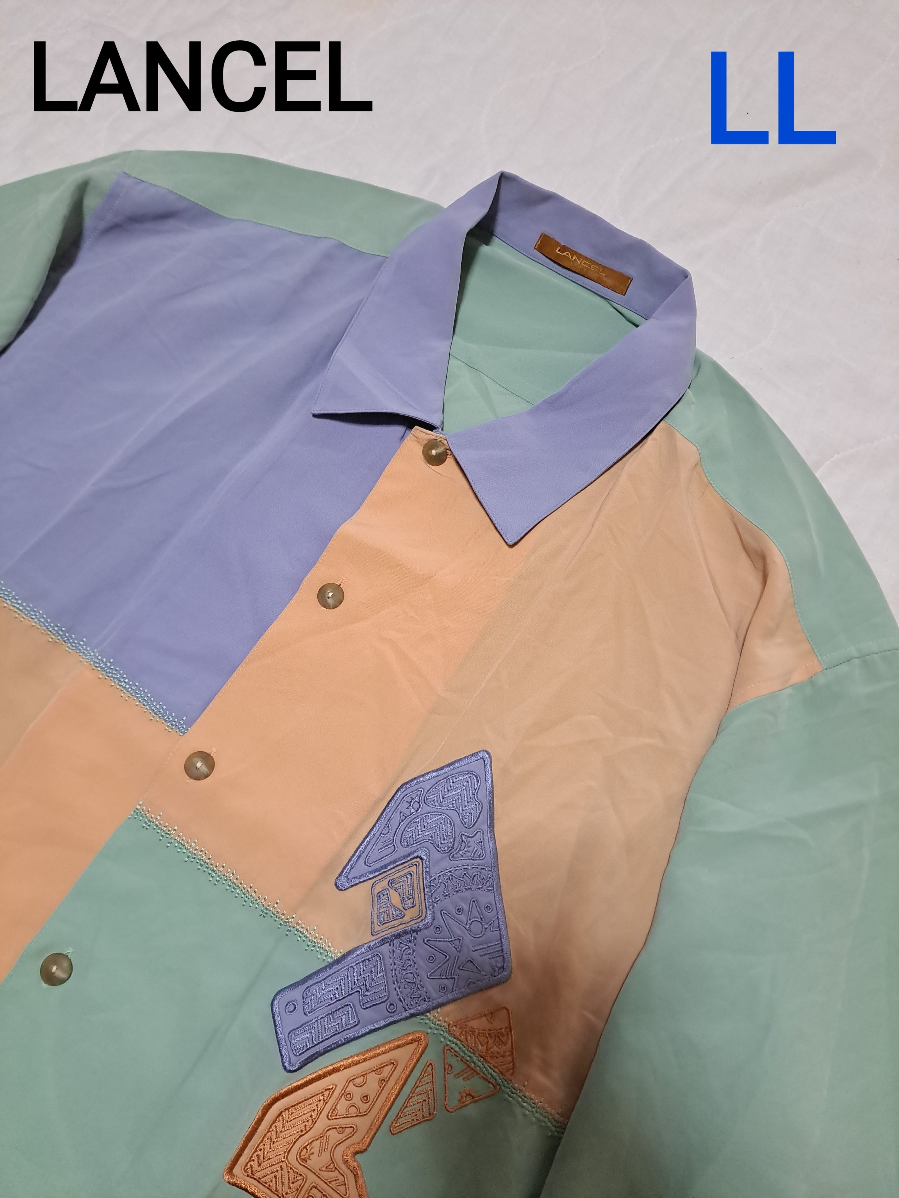 【レア、希少】LANCEL 長袖シャツ パステルカラー 刺繍 切り替えデザイン メンズ 薄手
