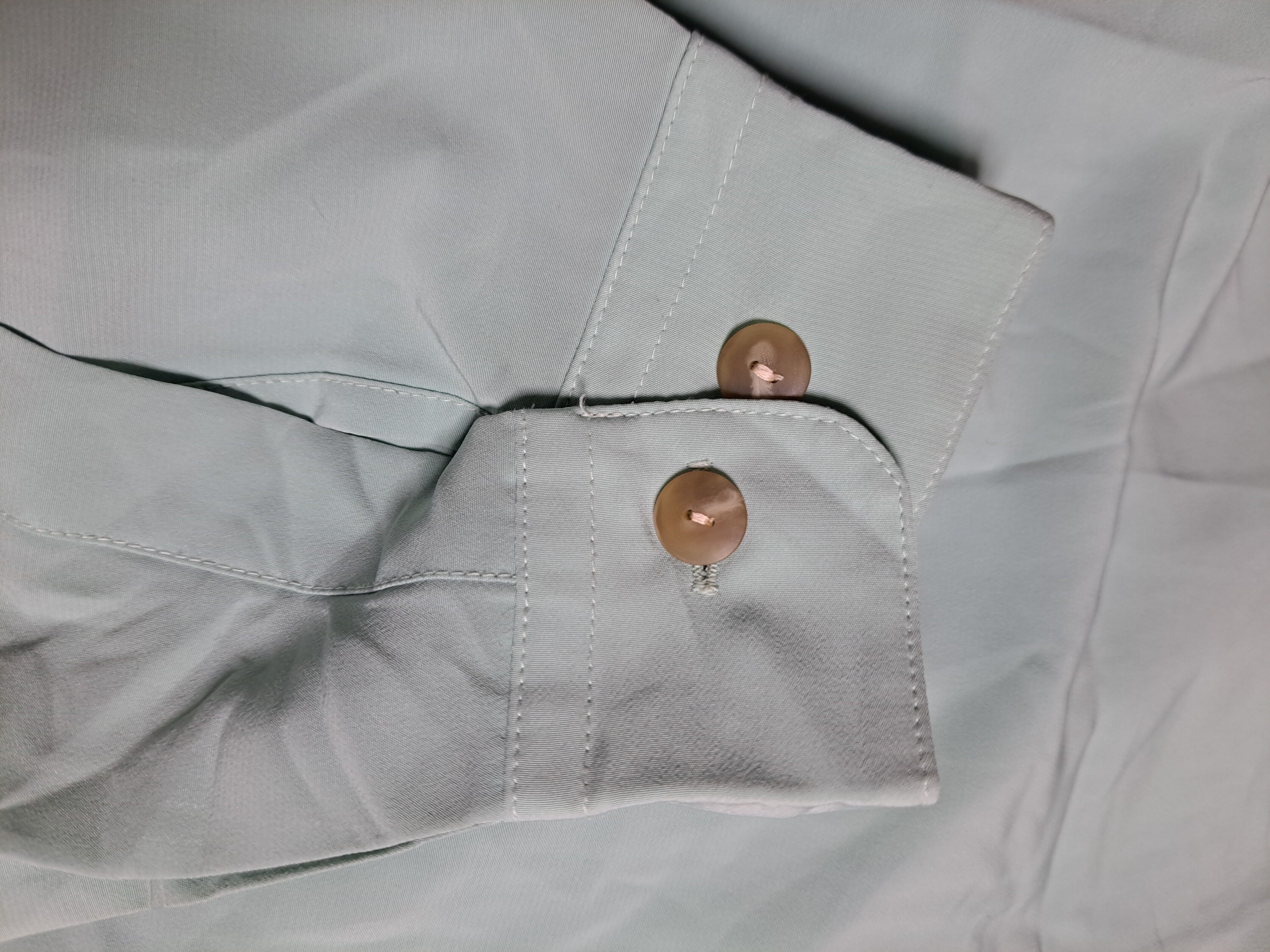 淡いカラー、すべすべした感触のパステルカラー。日本製。袖口はボタンで2段階調節可能。左身頃を中心とした刺繍や、なかなか見られない個性的なデザインも◎