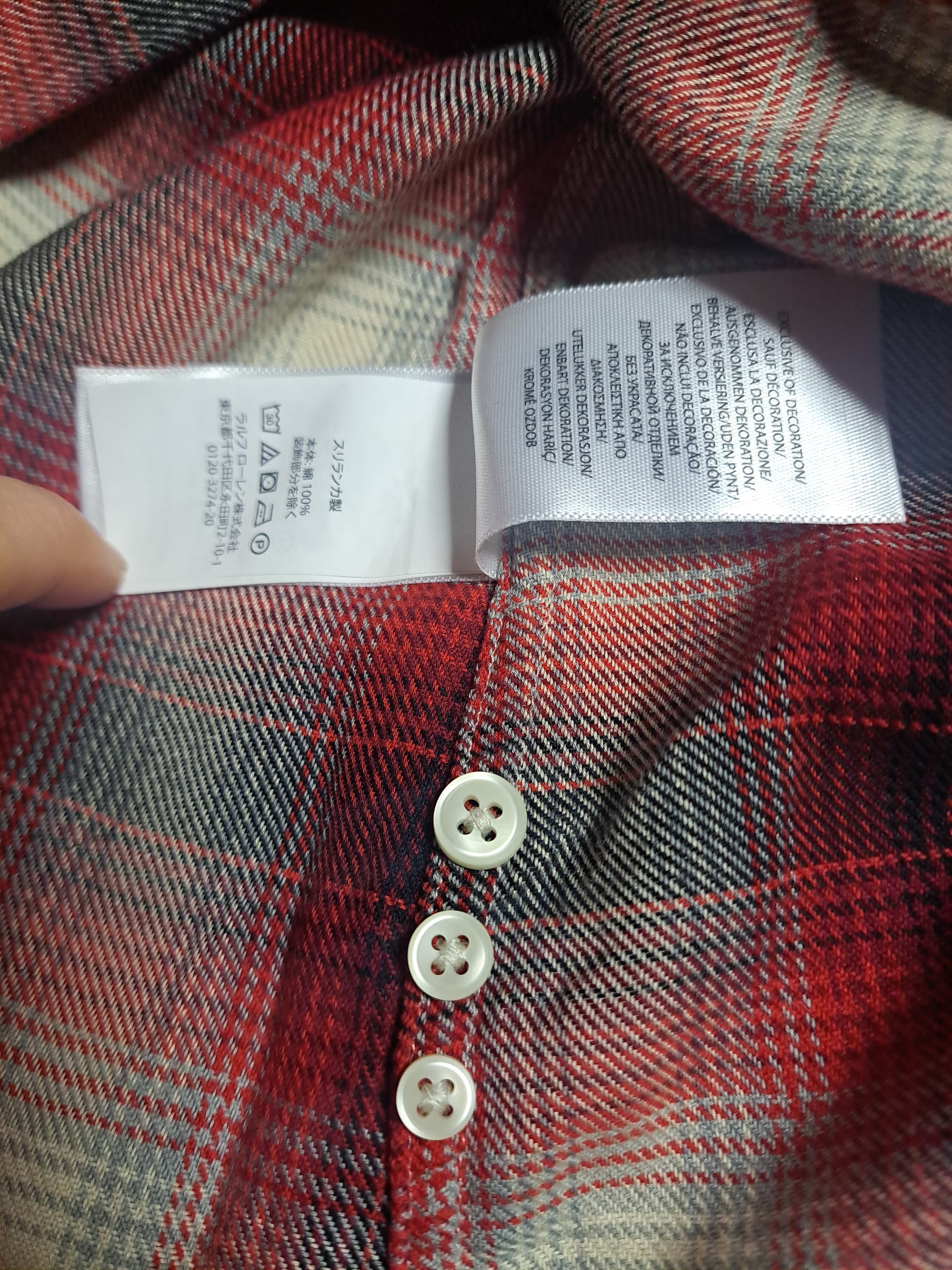 替えボタン3つつき。左胸に黒の糸でポニー刺繍入り。スリランカ製。