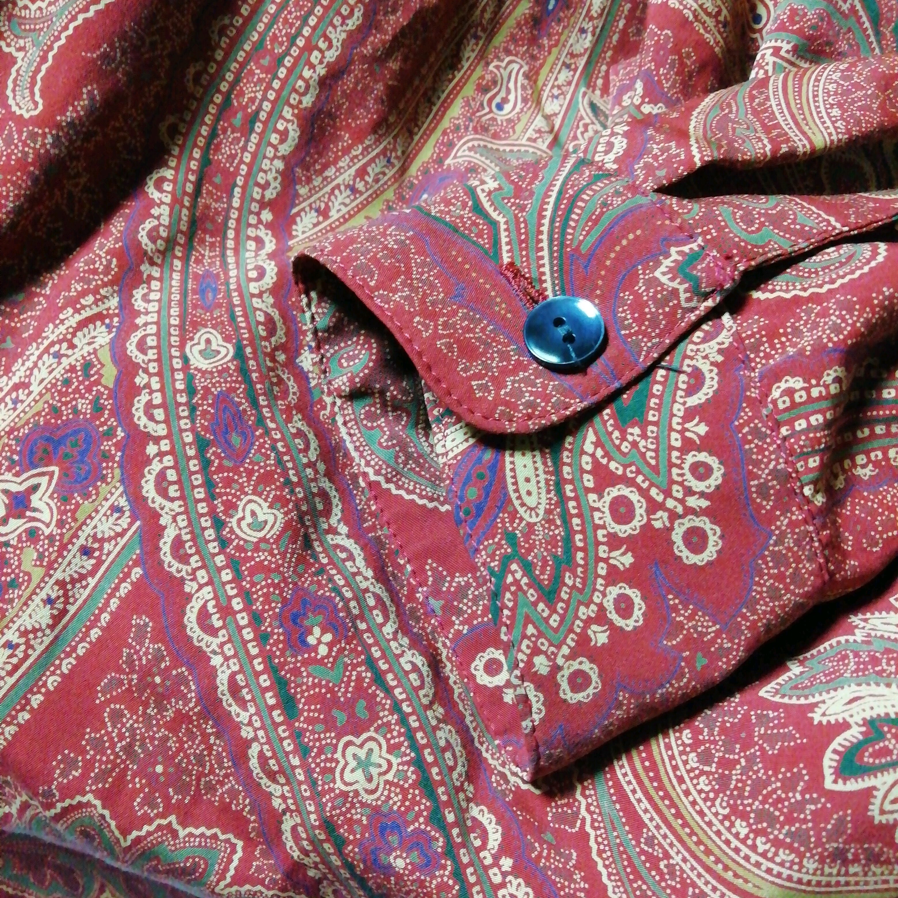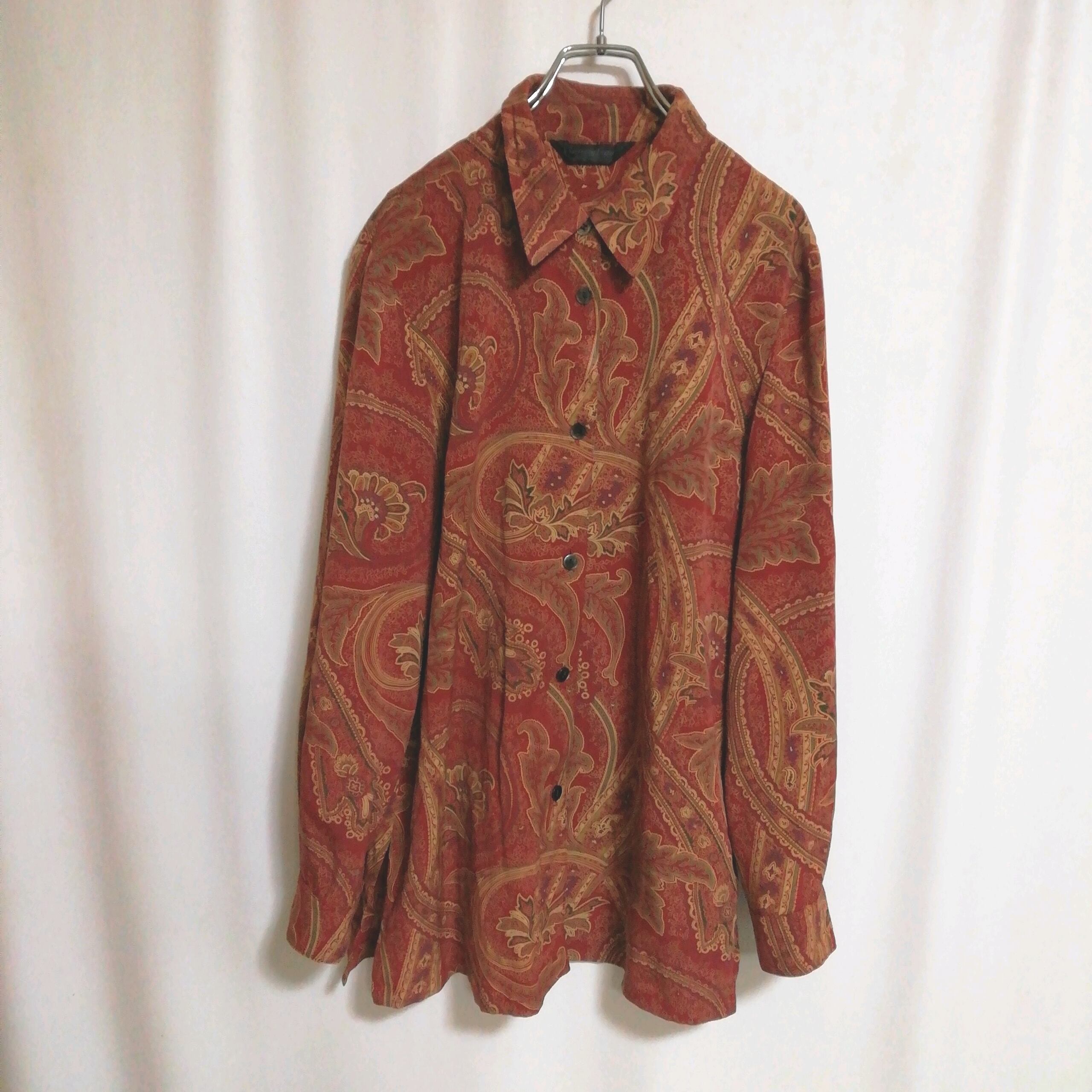 くすみカラーがシックで味わいのある、薄手のペイズリー柄シャツ。安心の日本製。フリーサイズで大きめの作りです。