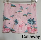 キャロウェイ 淡いピンクのカラーとフラミンゴの総柄が可愛いミニスカート風パンツ。