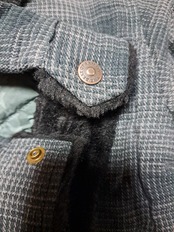 裏側キルティングに加え、襟元と肩にかけて、袖口とフロントボタン周辺などがフワフワのフェイクムートンで暖かいです。