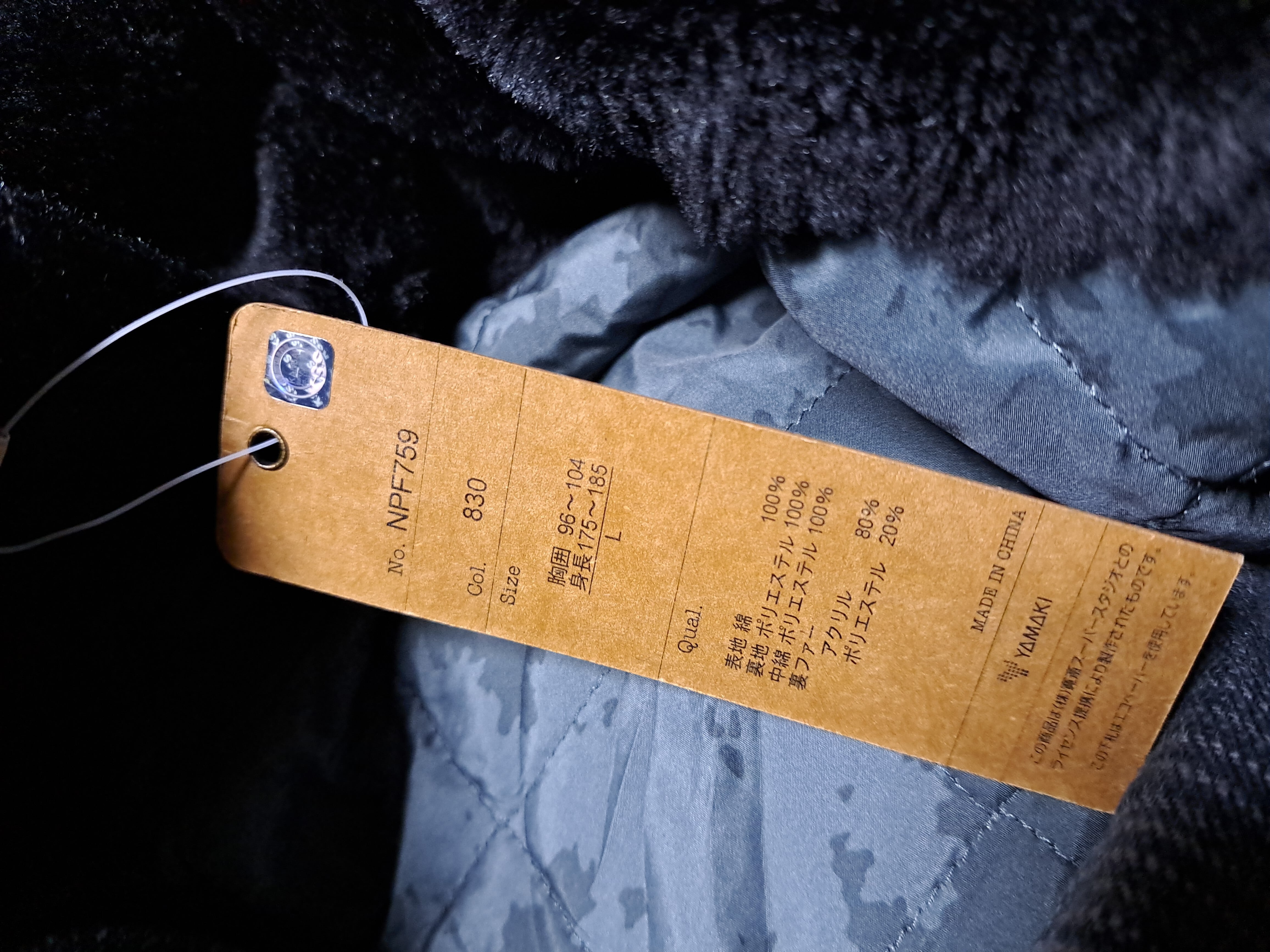 裏地、中綿:ポリエステル100
