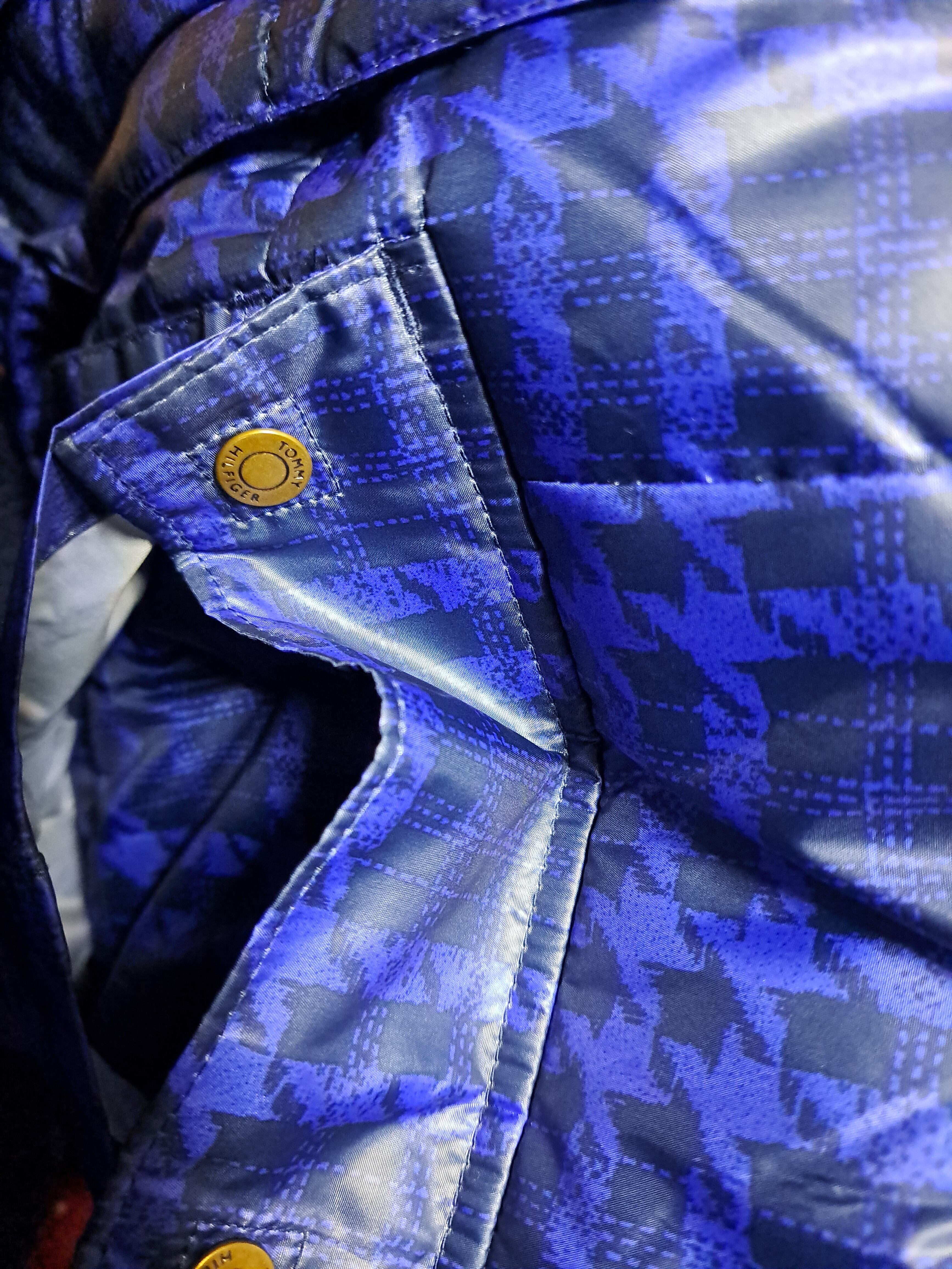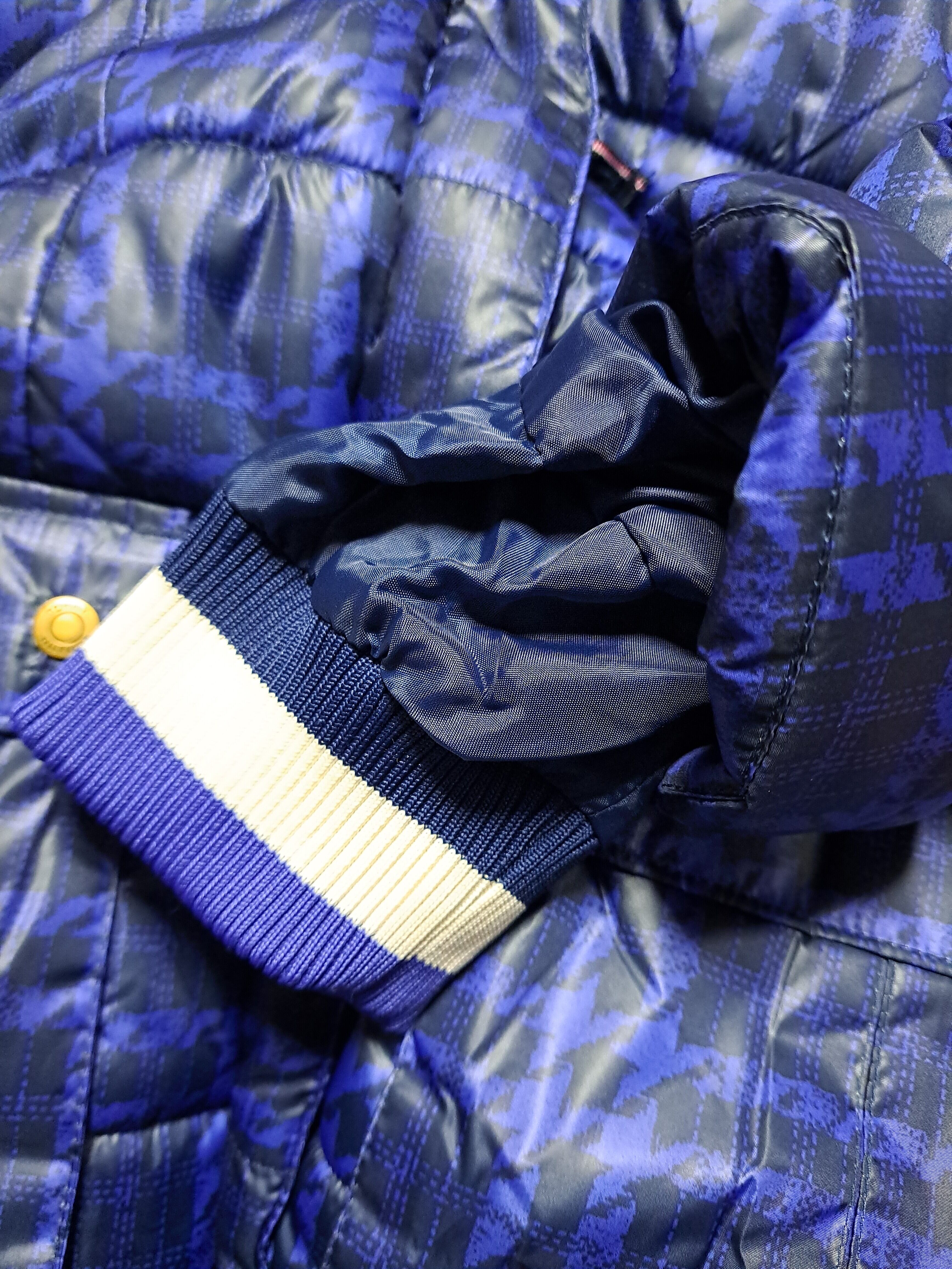厚手のジャケット。千鳥格子とチェックを掛け合わせたような、少し変わった柄です。左ポケット下側にミニロゴエンブレム入り。