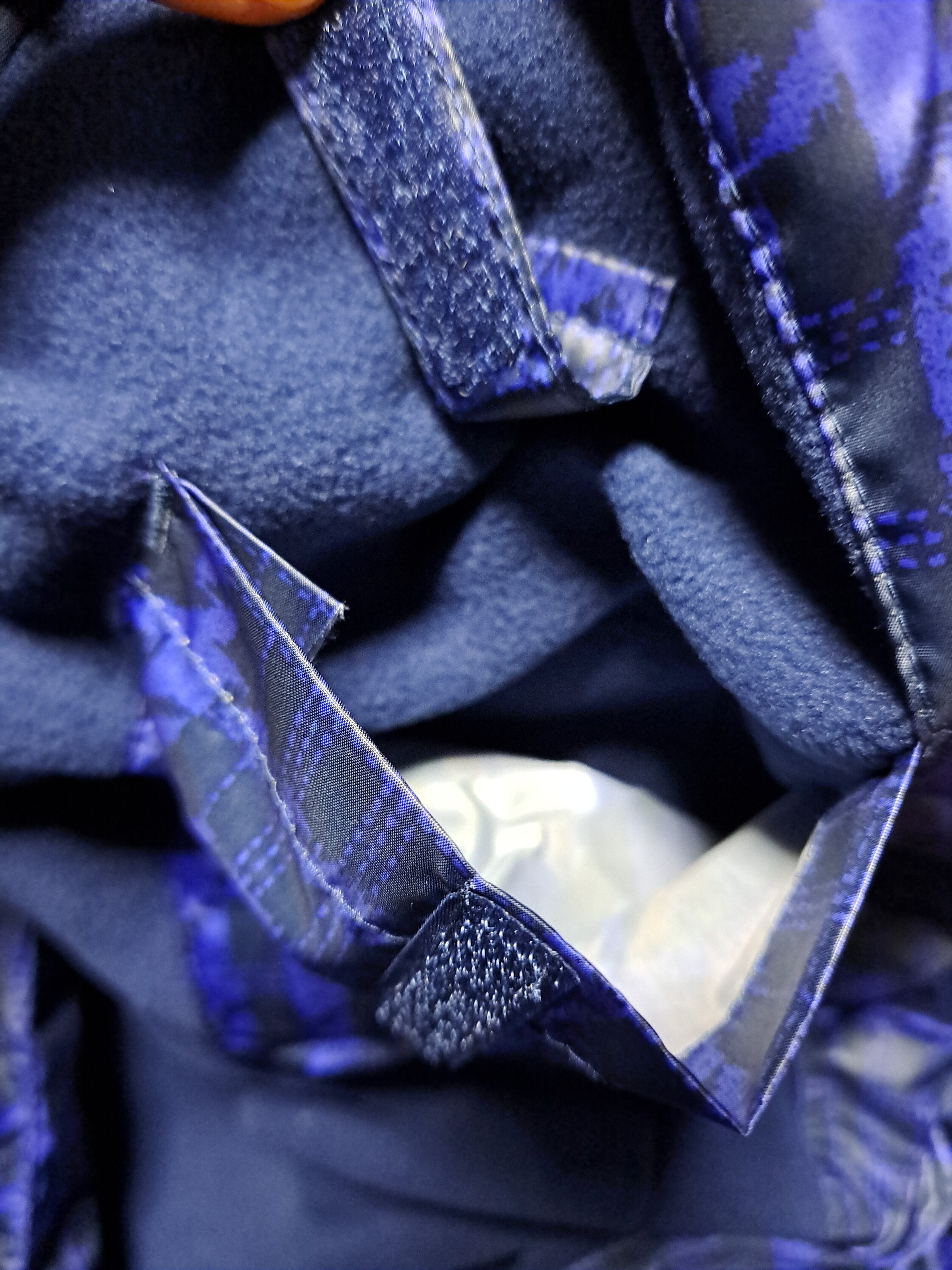 内側にもポケットがあるので、ポケットの数はフロントと合わせて合計3ヵ所です。フード一体型で、裏地は薄目のフリー仕様になっており、ロンtやシャツの上から羽織っても暖かい仕様となっています。