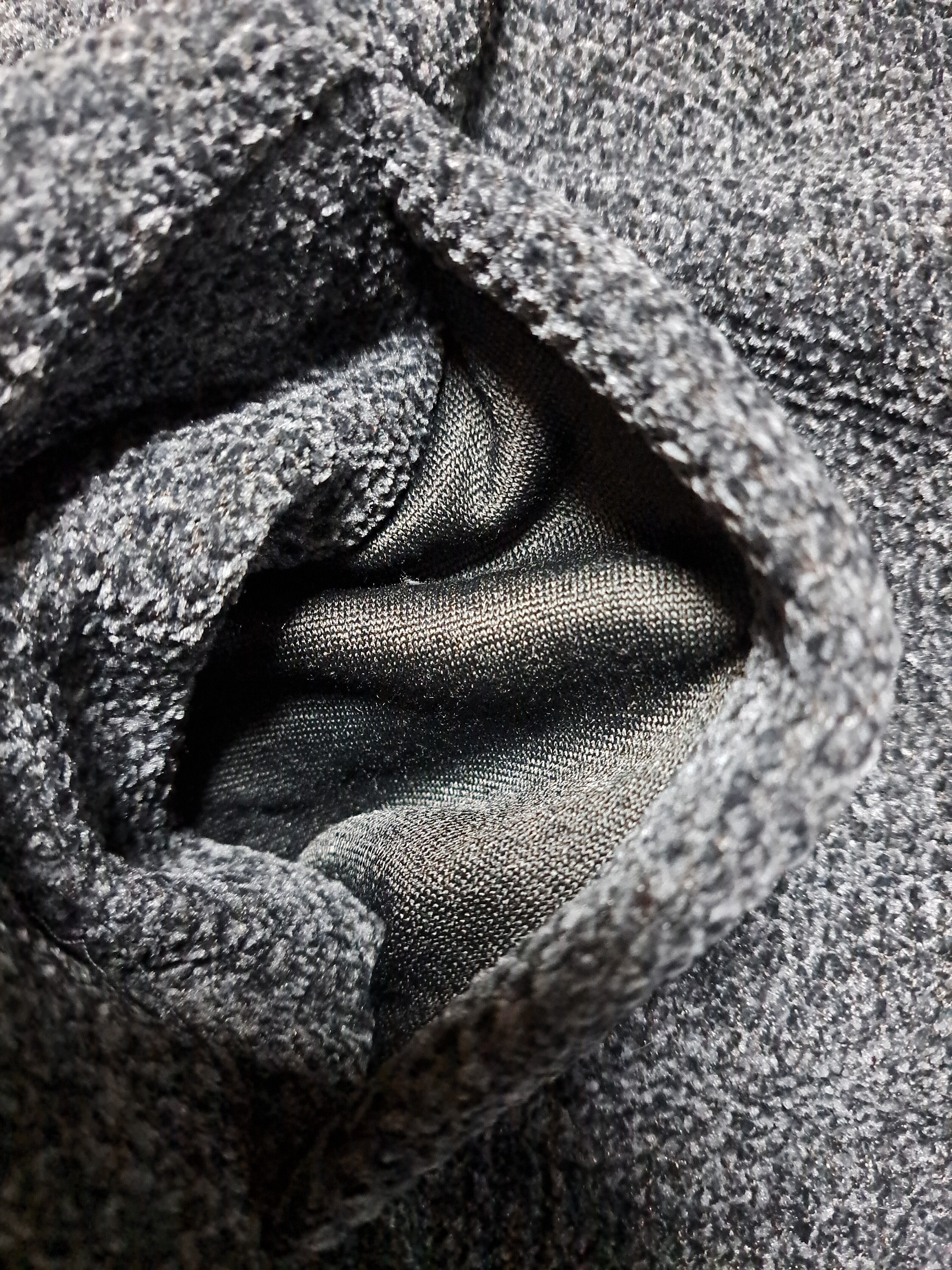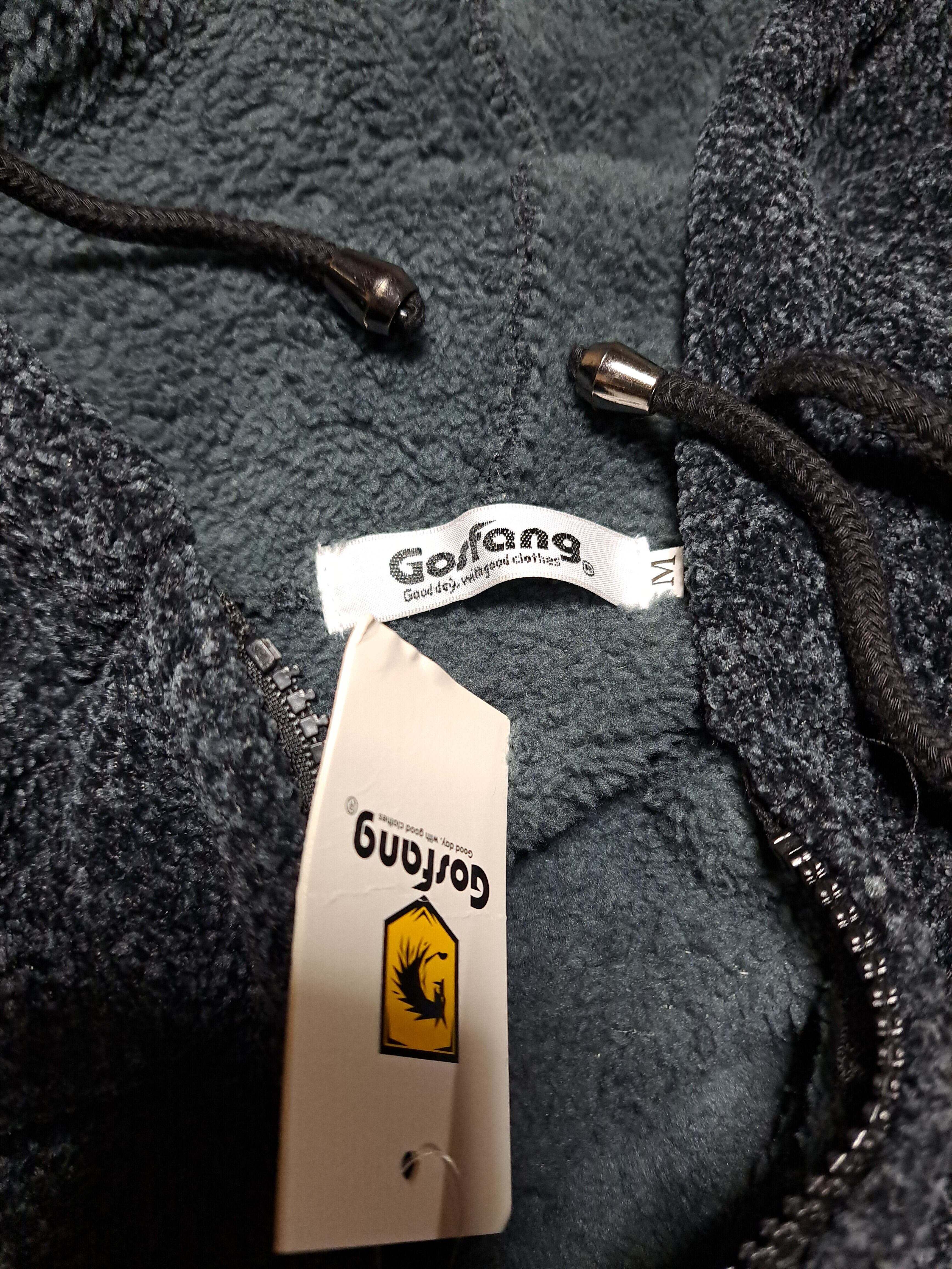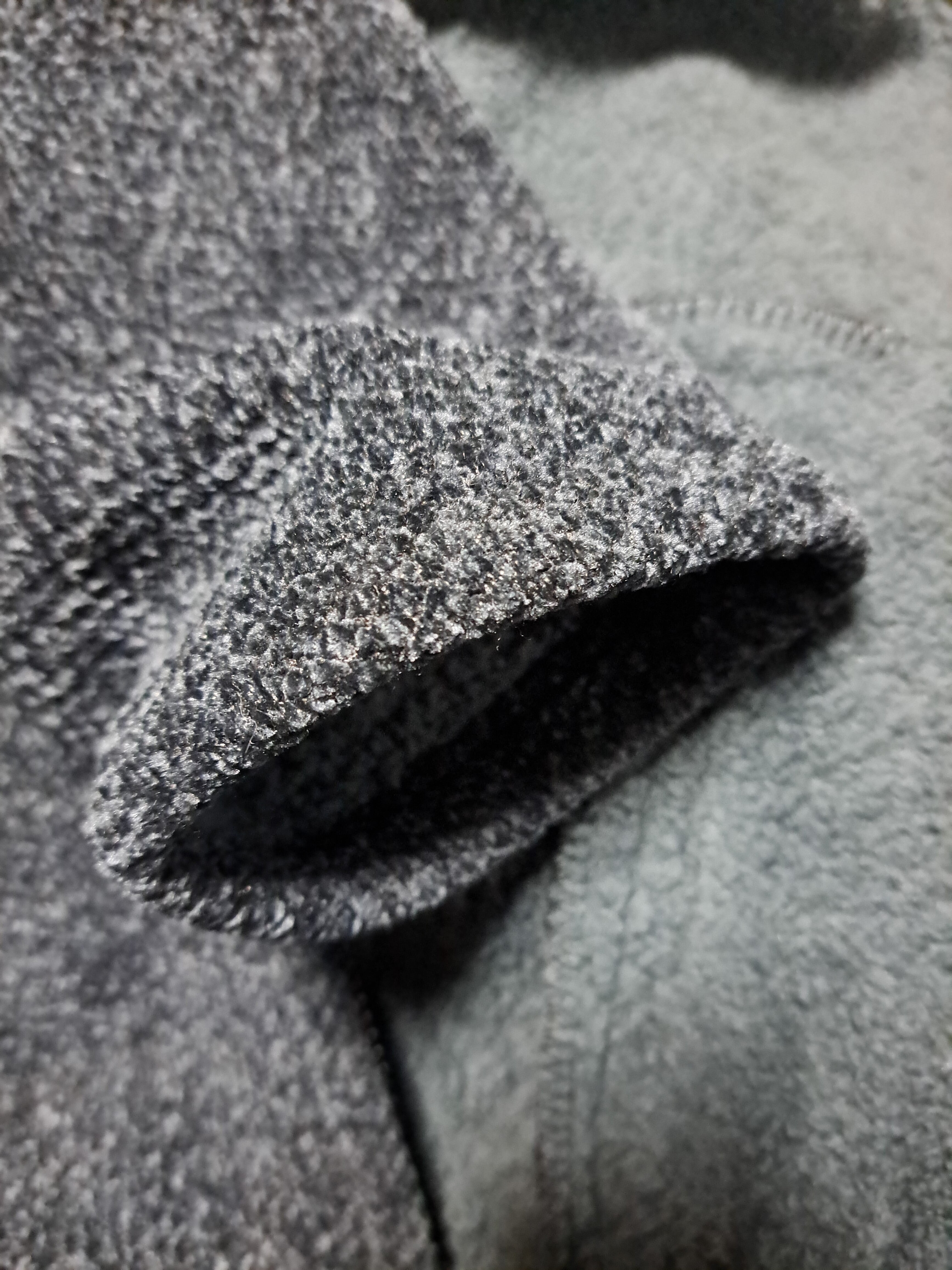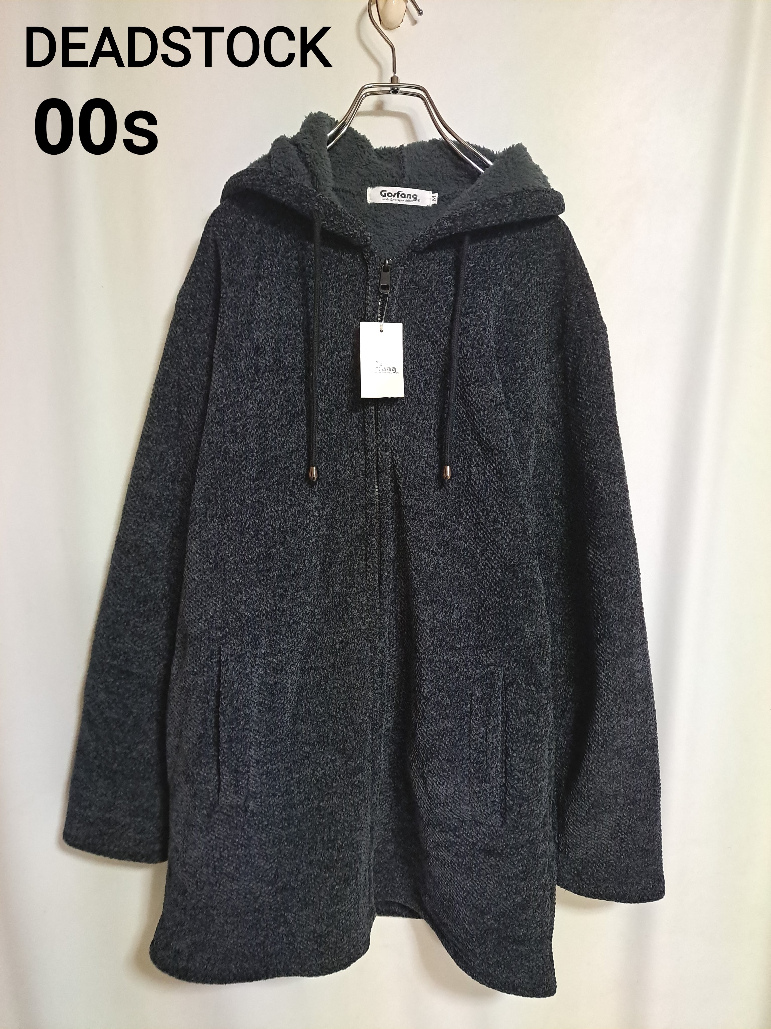 裏地がフリース仕様、表地もモコモコで暖かいフード一体型パーカー。フードは紐で絞れます。フロント左右に合計2つのポケット。